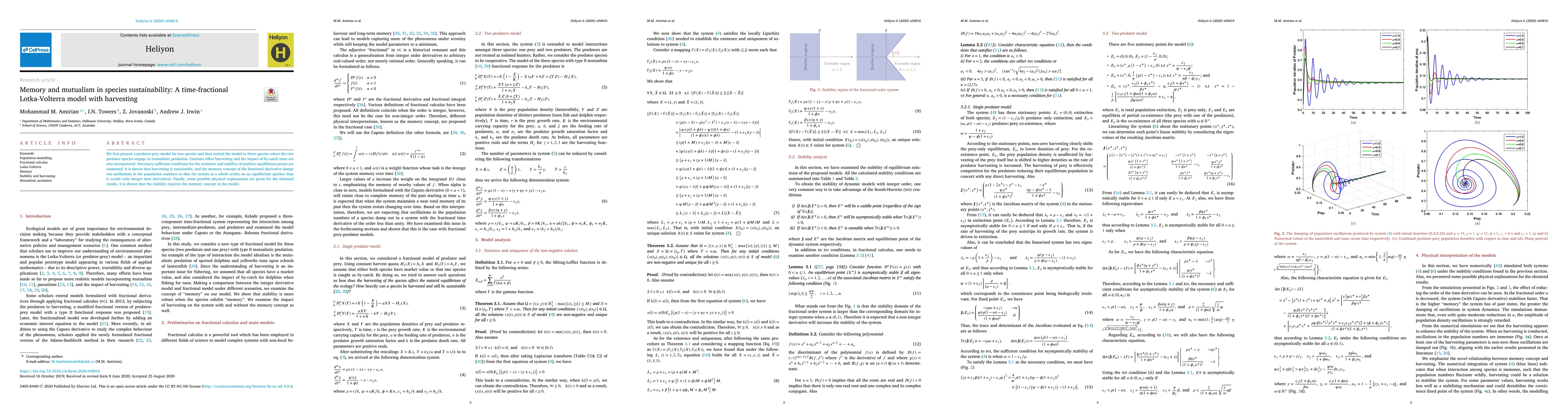 This paper develops a time-fractional Lotka-Volterra model to study predator-prey dynamics with mutualism and harvesting, demonstrating that fractional derivatives enhance stability and quicker equilibrium attainment by damping population oscillations. The model's stability hinges on the memory concept inherent in fractional derivatives.
