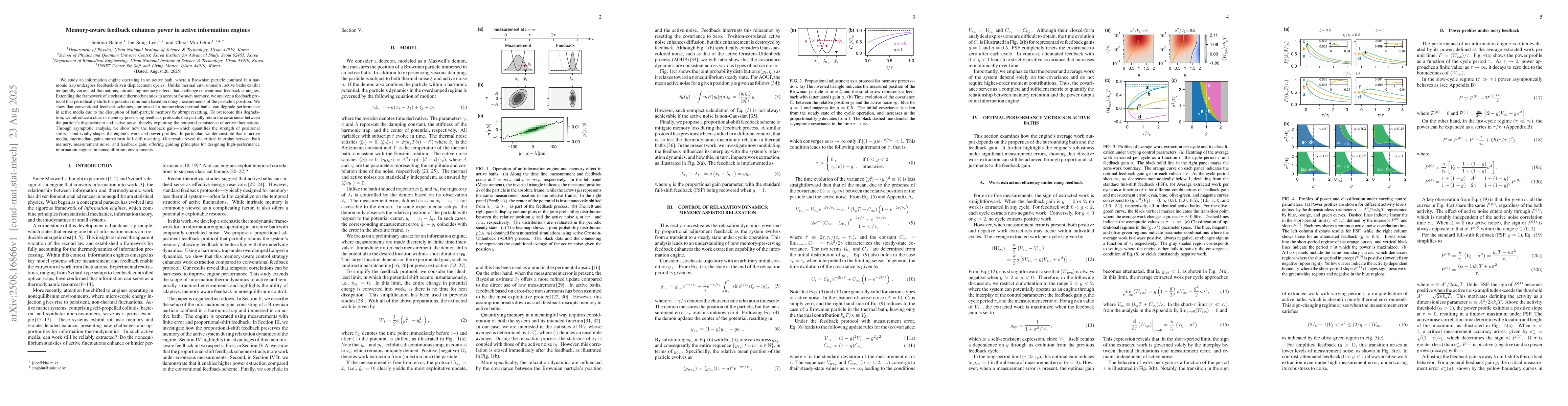 We study an information engine operating in an active bath, where a Brownian particle confined in a harmonic trap undergoes feedback-driven displacement cycles. Unlike thermal environments, active baths exhibit temporally correlated fluctuations, introducing memory effects that challenge conventional feedback strategies. Extending the framework of stochastic thermodynamics to account for such memory, we analyze a feedback protocol that periodically shifts the potential minimum based on noisy measurements of the particle's position. We show that conventional feedback schemes, optimized for memoryless thermal baths, can degrade performance in active media due to the disruption of bath-particle memory by abrupt resetting. To overcome this degradation, we introduce a class of memory-preserving feedback protocols that partially retain the covariance between the particle's displacement and active noise, thereby exploiting the temporal persistence of active fluctuations. Through asymptotic analysis, we show how the feedback gain -- which quantifies the strength of positional shifts -- nontrivially shapes the engine's work and power profiles. In particular, we demonstrate that in active media, intermediate gains outperform full-shift resetting. Our results reveal the critical interplay between bath memory, measurement noise, and feedback gain, offering guiding principles for designing high-performance information engines in nonequilibrium environments.