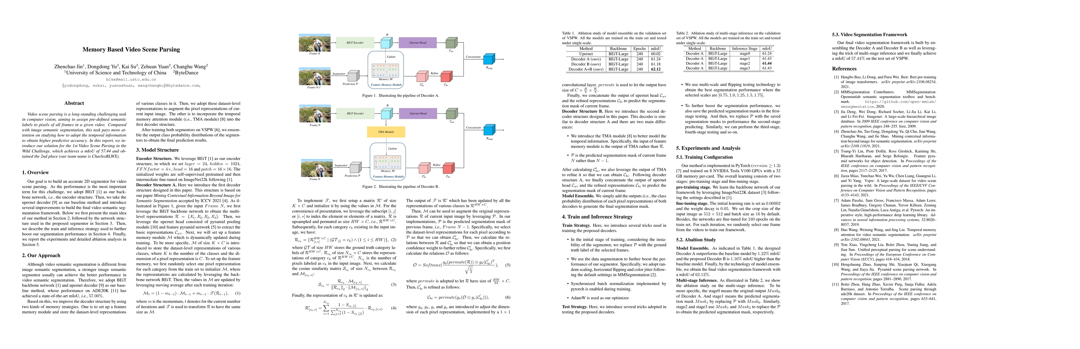 This paper presents a solution for video scene parsing that leverages temporal information to assign semantic labels to video pixels, achieving a mIoU of 57.44 and securing 2nd place in the 1st Video Scene Parsing in the Wild Challenge.