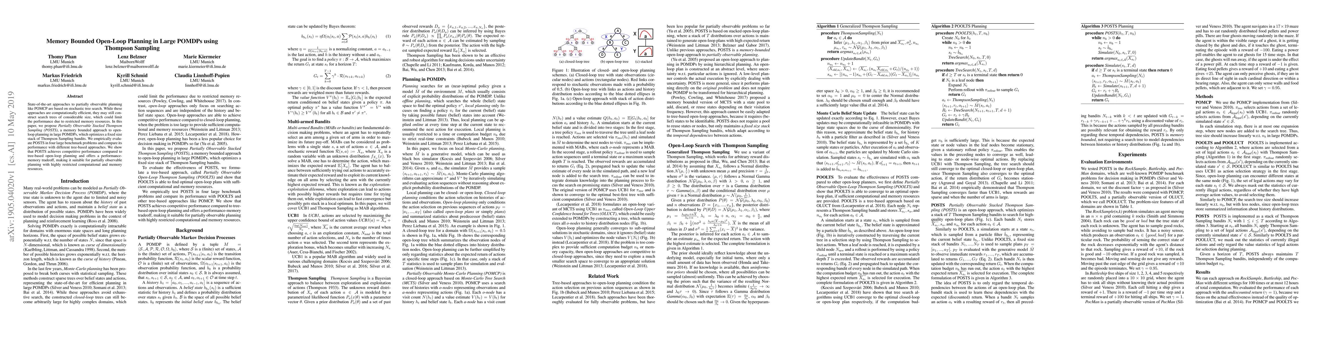 This paper introduces Partially Observable Stacked Thompson Sampling (POSTS) for memory-bounded open-loop planning in large POMDPs, optimizing a fixed-size stack of Thompson Sampling bandits. Empirical evaluations show POSTS achieves competitive performance compared to tree-based methods while offering a performance-memory tradeoff suitable for environments with limited computational and memory resources.