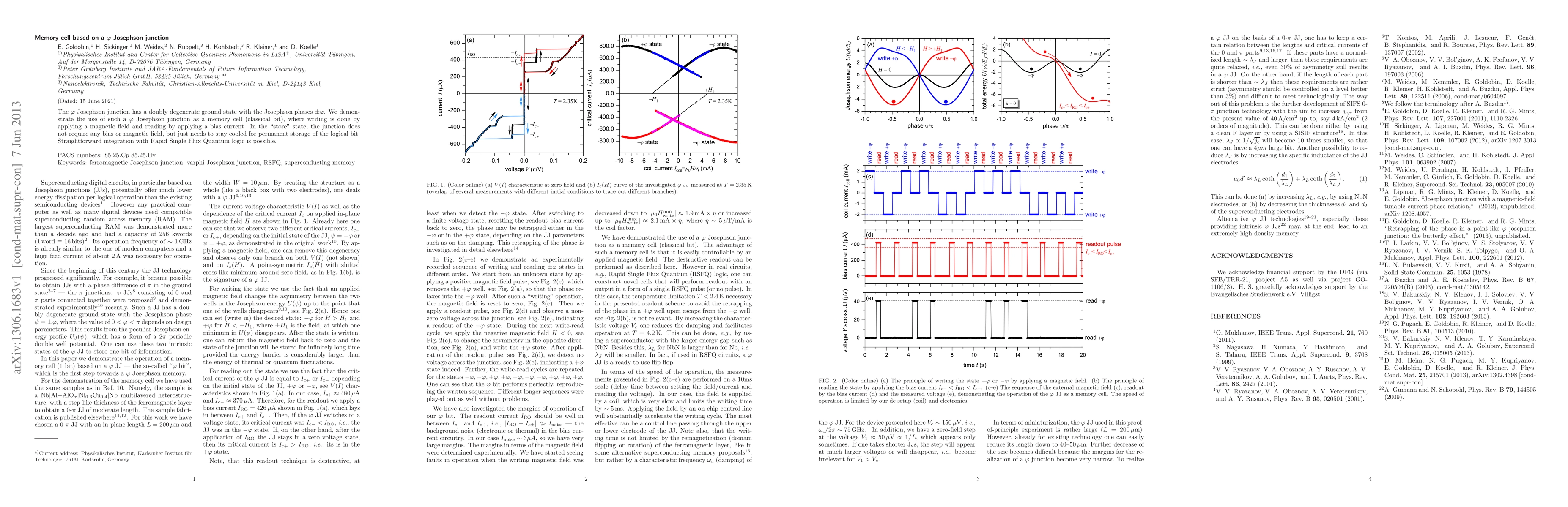 This paper demonstrates a memory cell based on a $\varphi$ Josephson junction with a doubly degenerate ground state, enabling storage of classical bits. Writing is achieved via magnetic field application, and reading through a bias current, with the stored state requiring only cooling for permanence.