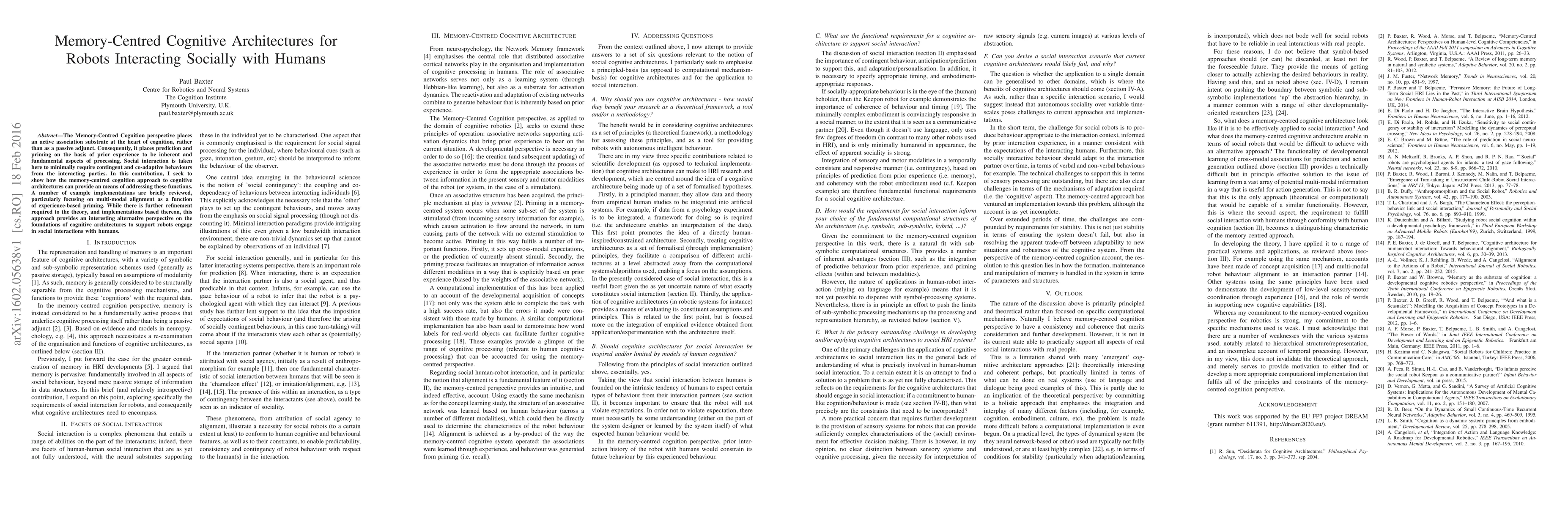 The Memory-Centred Cognition perspective places an active association substrate at the heart of cognition, rather than as a passive adjunct. Consequently, it places prediction and priming on the basis of prior experience to be inherent and fundamental aspects of processing. Social interaction is taken here to minimally require contingent and co-adaptive behaviours from the interacting parties. In this contribution, I seek to show how the memory-centred cognition approach to cognitive architectures can provide an means of addressing these functions. A number of example implementations are briefly reviewed, particularly focusing on multi-modal alignment as a function of experience-based priming. While there is further refinement required to the theory, and implementations based thereon, this approach provides an interesting alternative perspective on the foundations of cognitive architectures to support robots engage in social interactions with humans.