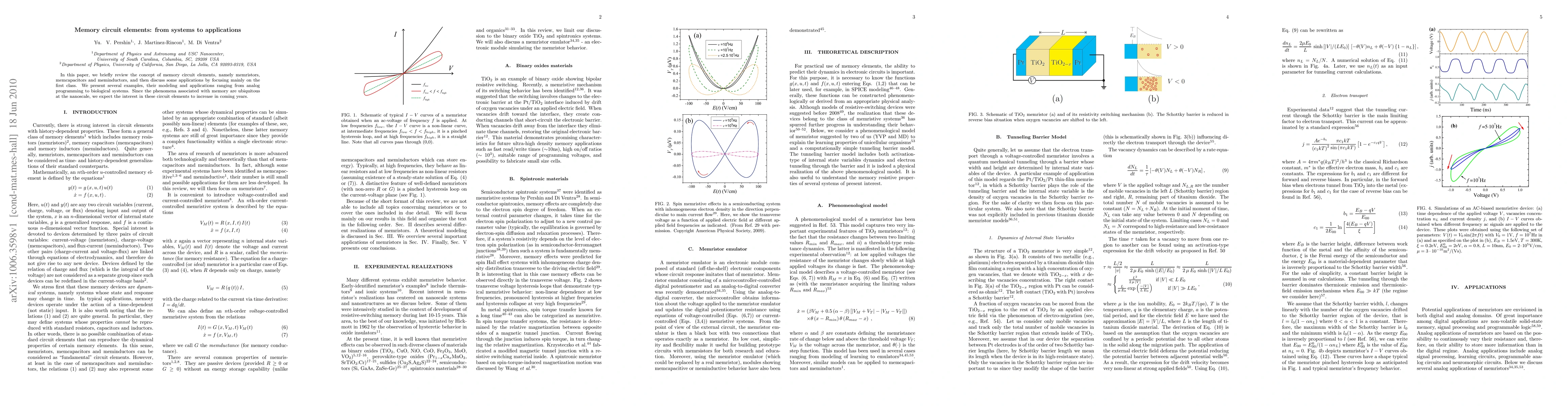 This paper reviews memory circuit elements, specifically memristors, memcapacitors, and meminductors, and highlights their potential applications, particularly focusing on memristors in areas like analog programming and biological systems, anticipating growing interest in these nanoscale phenomena.