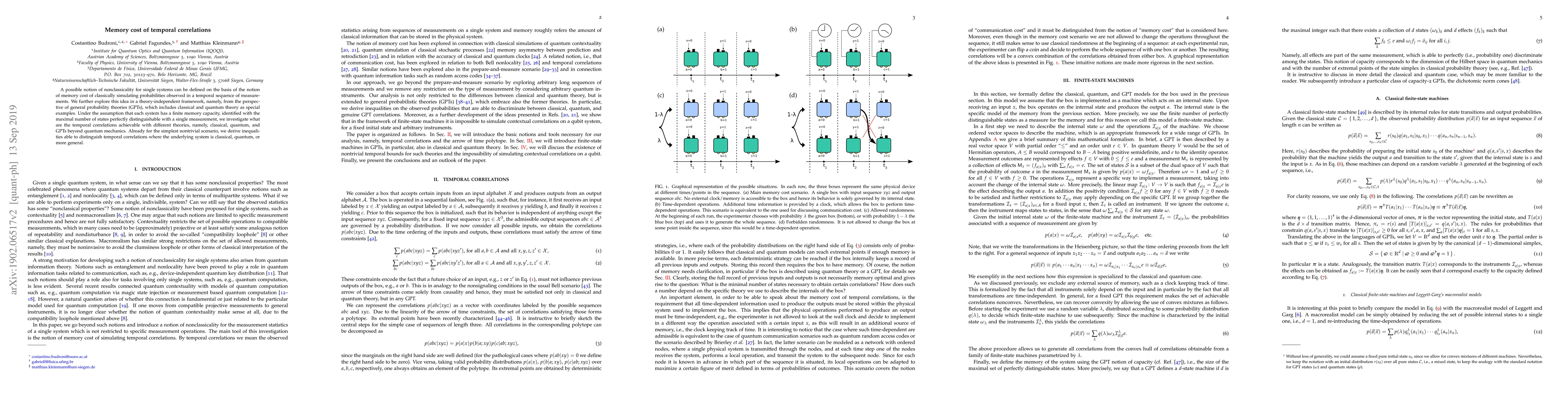 This paper explores nonclassicality in single systems through the memory cost of simulating temporal correlations in measurement sequences, employing general probability theories (GPTs). It derives inequalities distinguishing classical, quantum, and more general temporal correlations based on finite memory capacities.