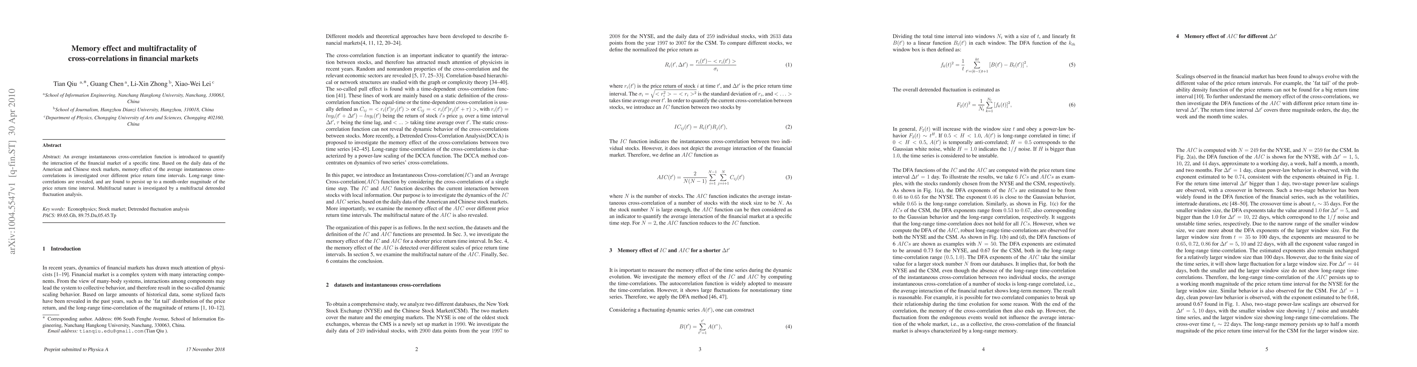 An average instantaneous cross-correlation function is introduced to quantify the interaction of the financial market of a specific time. Based on the daily data of the American and Chinese stock markets, memory effect of the average instantaneous cross-correlations is investigated over different price return time intervals. Long-range time-correlations are revealed, and are found to persist up to a month-order magnitude of the price return time interval. Multifractal nature is investigated by a multifractal detrended fluctuation analysis.
