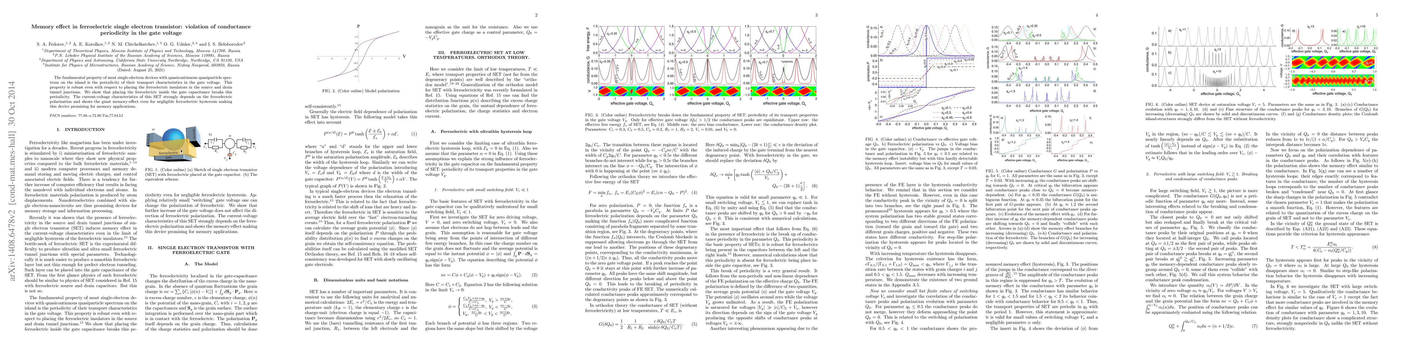 This paper demonstrates that ferroelectric single electron transistors (SET) placed within the gate capacitance disrupt the usual periodicity of conductance in gate voltage, leading to a strong dependence on ferroelectric polarization and a significant memory effect, making them promising for memory applications.