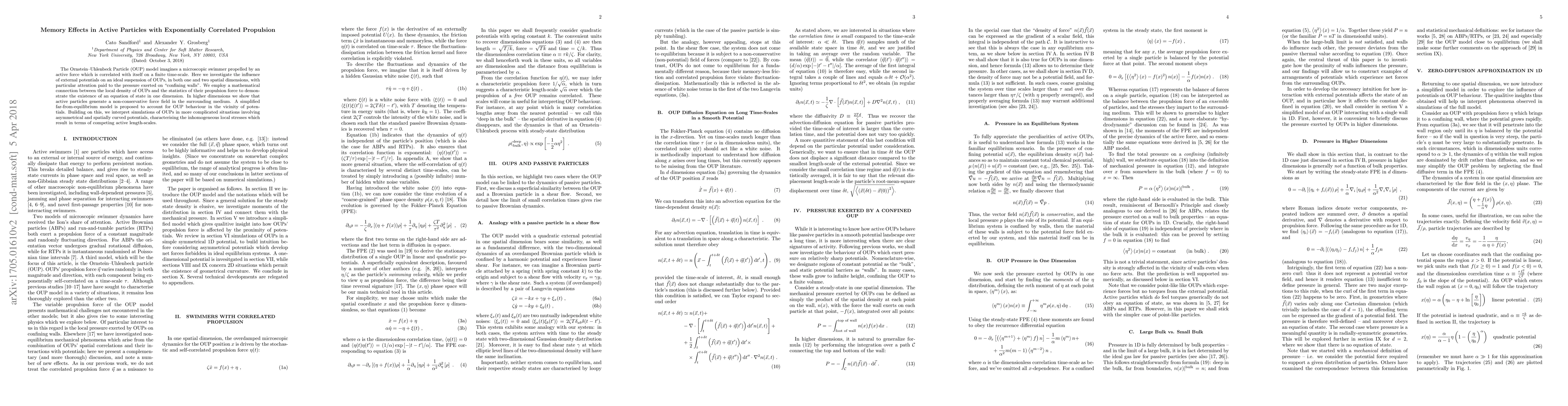 This paper investigates the effects of external potentials on Ornstein-Uhlenbeck Particles (OUPs) with exponentially correlated propulsion, demonstrating an equation of state in one dimension and a non-conservative force field in higher dimensions. It proposes a simplified model to explain OUP behavior near potentials and characterizes the resulting inhomogeneous local stresses.
