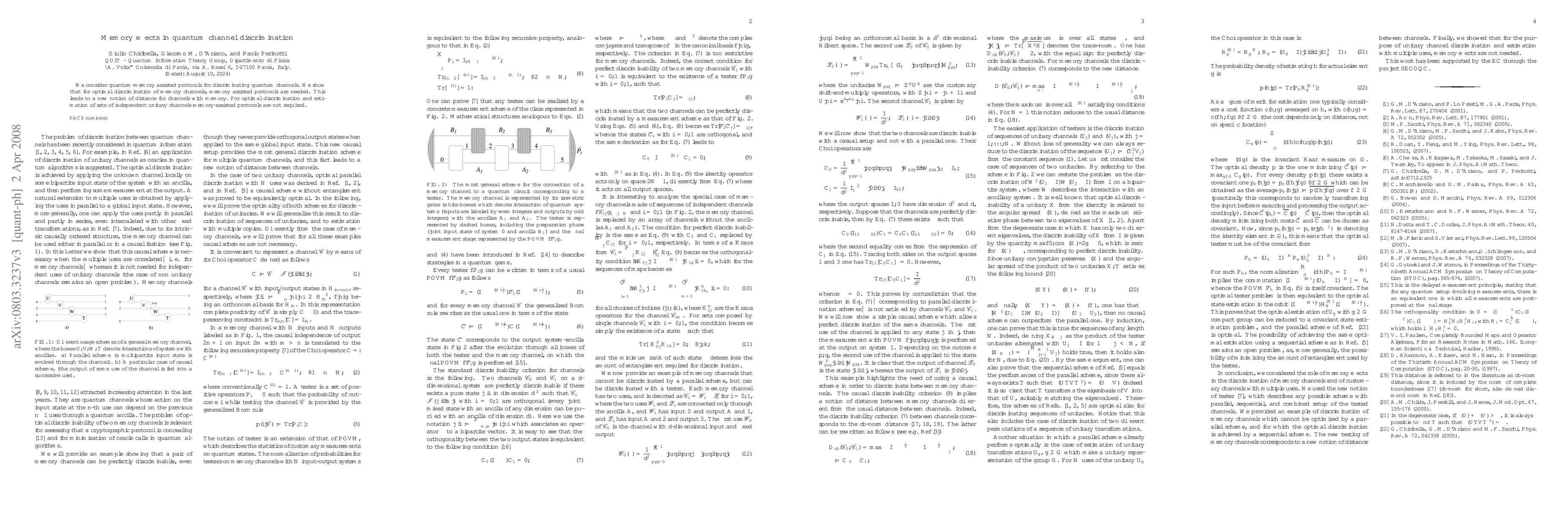 Summary: This paper explores quantum-memory assisted protocols for discriminating quantum channels, revealing that memory is essential for optimal discrimination of memory channels but unnecessary for optimal discrimination and estimation of unitary channels. It introduces a new distance notion for channels with memory.