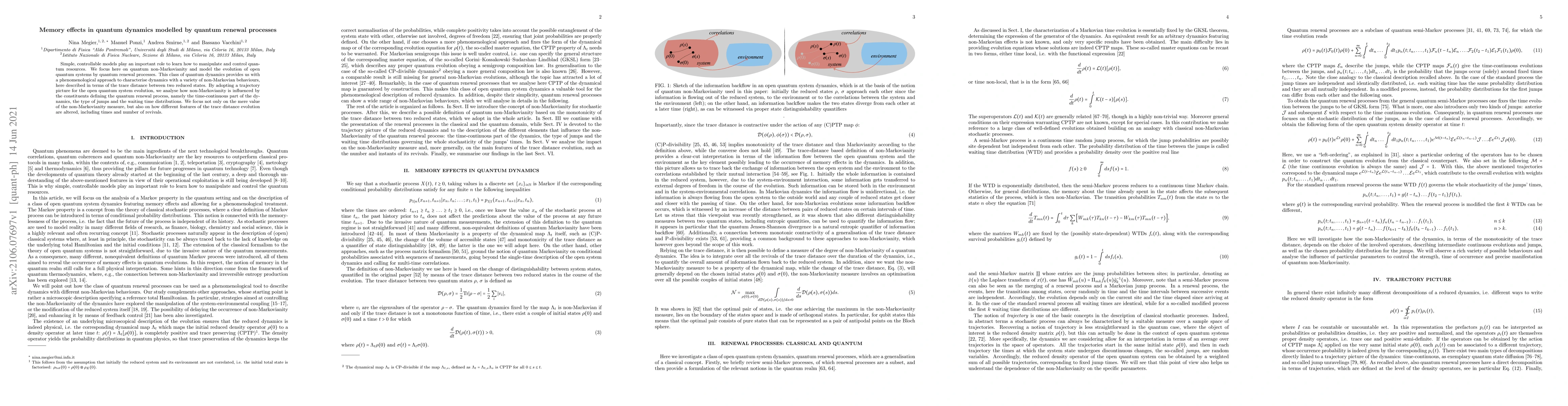 This paper explores how non-Markovianity in quantum dynamics can be influenced by different components of a quantum renewal process, including time-continuous part and waiting time distributions. It analyzes the effects on non-Markovianity measure and its implications for controlling quantum resources.