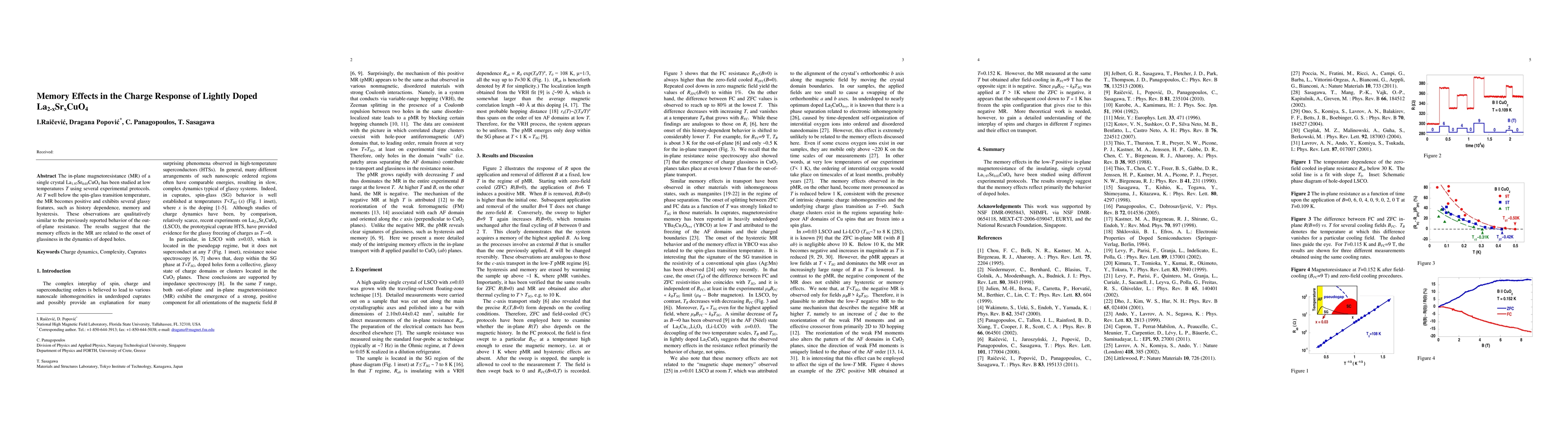 This study investigates the in-plane magnetoresistance of lightly doped La_{2-x}Sr_{x}CuO_{4} at low temperatures, revealing positive magnetoresistance with glassy features like history dependence, memory, and hysteresis. The findings suggest these memory effects are linked to the onset of glassiness in doped hole dynamics.