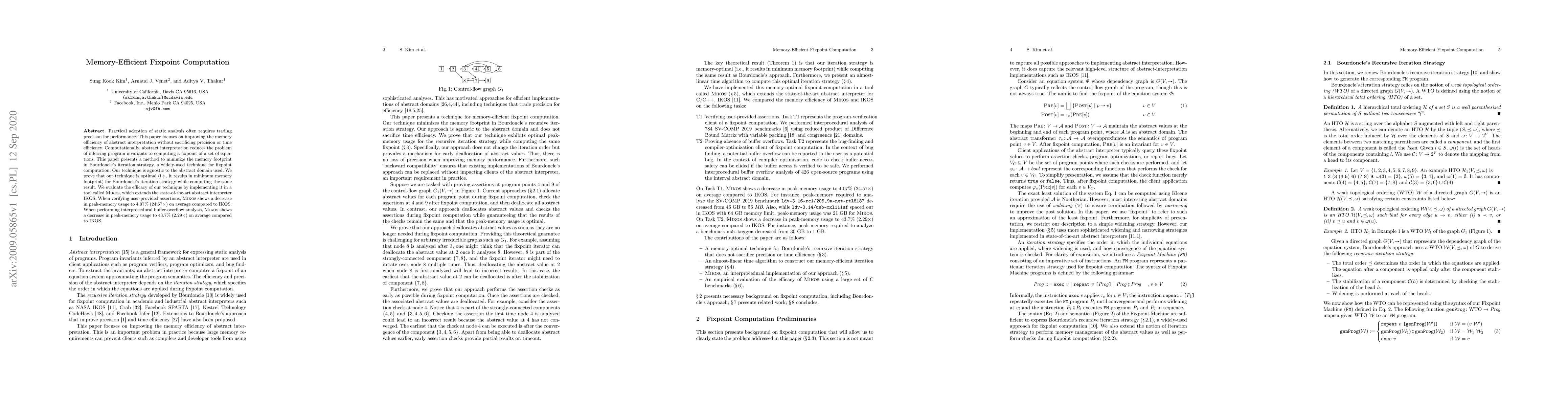 Practical adoption of static analysis often requires trading precision for performance. This paper focuses on improving the memory efficiency of abstract interpretation without sacrificing precision or time efficiency. Computationally, abstract interpretation reduces the problem of inferring program invariants to computing a fixpoint of a set of equations. This paper presents a method to minimize the memory footprint in Bourdoncle's iteration strategy, a widely-used technique for fixpoint computation. Our technique is agnostic to the abstract domain used. We prove that our technique is optimal (i.e., it results in minimum memory footprint) for Bourdoncle's iteration strategy while computing the same result. We evaluate the efficacy of our technique by implementing it in a tool called MIKOS, which extends the state-of-the-art abstract interpreter IKOS. When verifying user-provided assertions, MIKOS shows a decrease in peak-memory usage to 4.07% (24.57x) on average compared to IKOS. When performing interprocedural buffer-overflow analysis, MIKOS shows a decrease in peak-memory usage to 43.7% (2.29x) on average compared to IKOS.