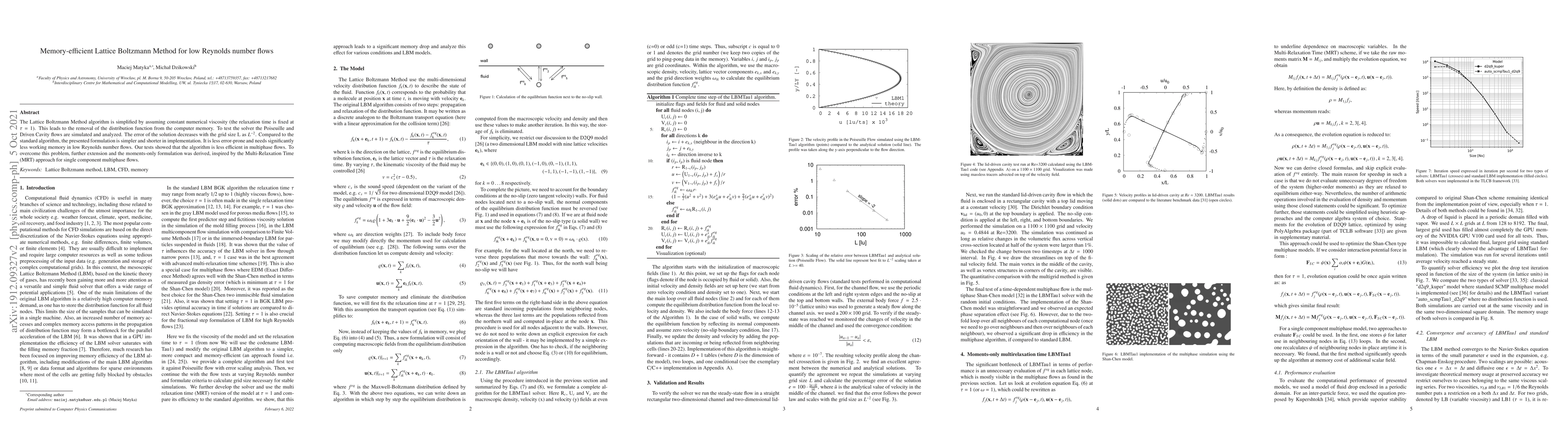 This paper proposes a memory-efficient Lattice Boltzmann Method for low Reynolds number flows by fixing the relaxation time, reducing memory usage by eliminating the distribution function. The method is tested on Poiseuille and Driven Cavity flows, showing reduced error and memory requirements compared to the standard algorithm.
