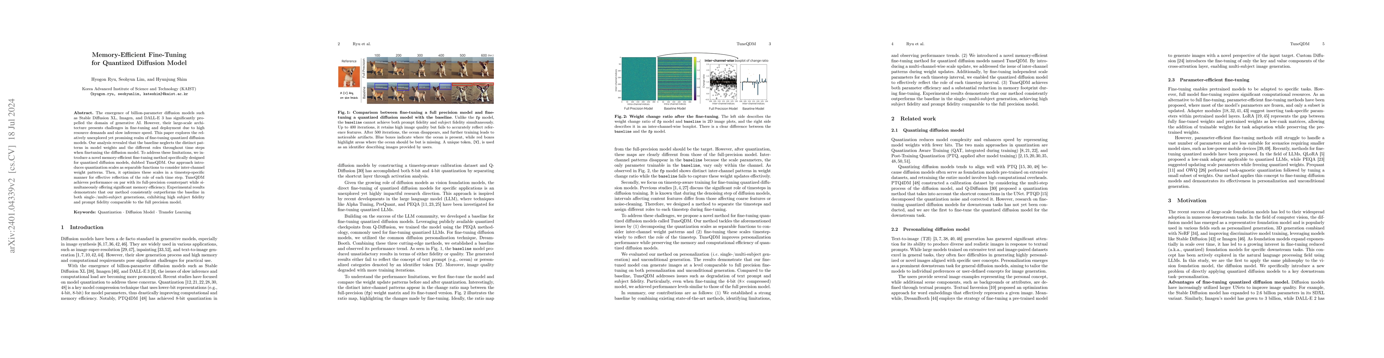 The rise of billion-parameter diffusion models like Stable Diffusion XL, Imagen, and Dall-E3 markedly advances the field of generative AI. However, their large-scale nature poses challenges in fine-tuning and deployment due to high resource demands and slow inference speed. This paper ventures into the relatively unexplored yet promising realm of fine-tuning quantized diffusion models. We establish a strong baseline by customizing three models: PEQA for fine-tuning quantization parameters, Q-Diffusion for post-training quantization, and DreamBooth for personalization. Our analysis reveals a notable trade-off between subject and prompt fidelity within the baseline model. To address these issues, we introduce two strategies, inspired by the distinct roles of different timesteps in diffusion models: S1 optimizing a single set of fine-tuning parameters exclusively at selected intervals, and S2 creating multiple fine-tuning parameter sets, each specialized for different timestep intervals. Our approach not only enhances personalization but also upholds prompt fidelity and image quality, significantly outperforming the baseline qualitatively and quantitatively. The code will be made publicly available.