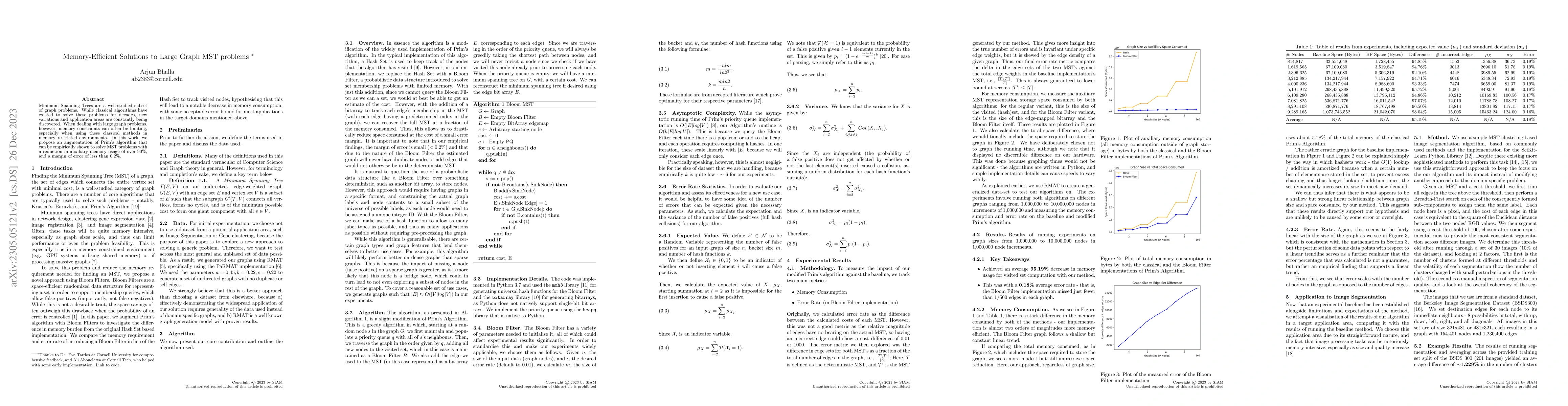 This paper proposes an enhanced version of Prim's algorithm to tackle memory-intensive minimum spanning tree (MST) problems in large graphs, achieving over 90% reduction in memory usage while maintaining accuracy within 0.3%.