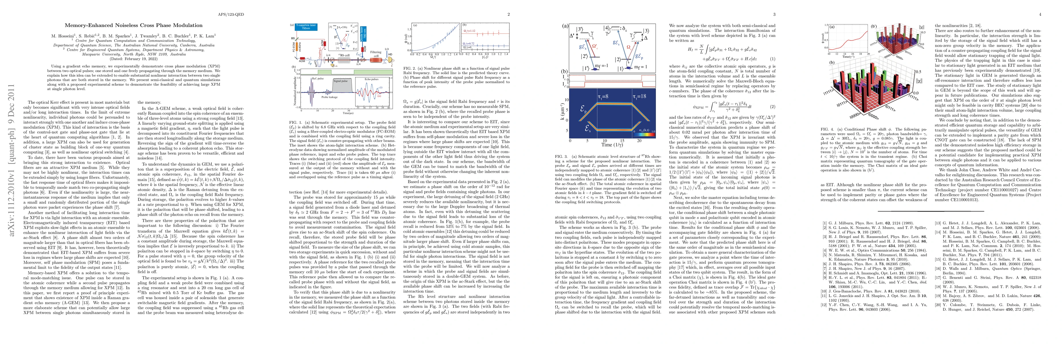 Researchers demonstrate cross phase modulation between stored and freely propagating optical pulses in a memory medium, paving the way for substantial nonlinear interaction at single photon level.