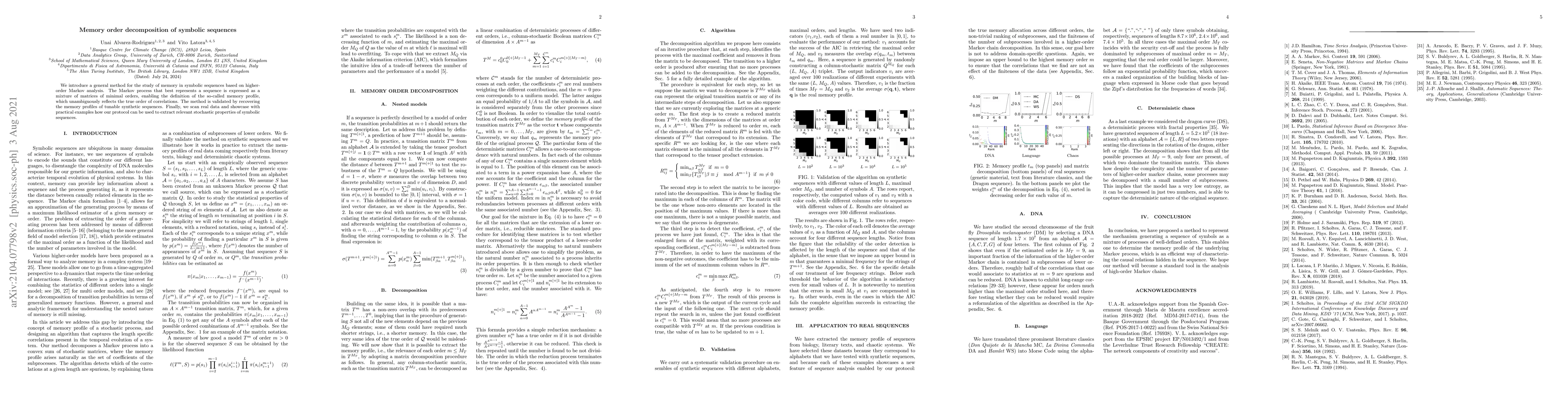 This paper proposes a method for analyzing memory in symbolic sequences using higher-order Markov analysis, defining a "memory profile" that reflects the true order of correlations. The method is validated on synthetic sequences and demonstrates practical applications for extracting stochastic properties from real data.