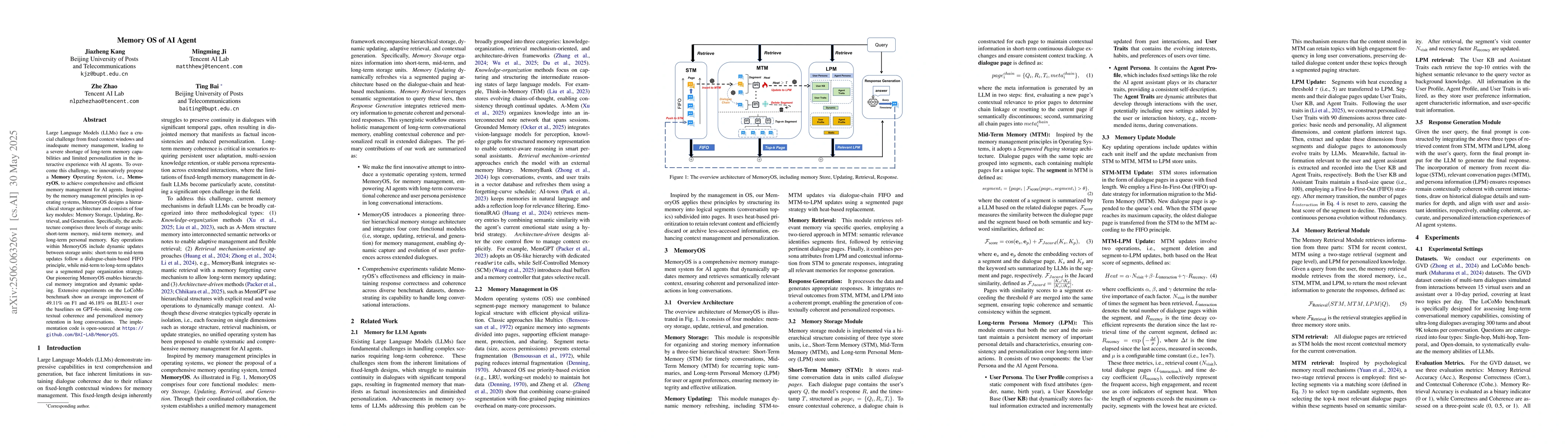 MemoryOS is a novel memory management system for AI agents that addresses the limitations of fixed context windows in long conversations.