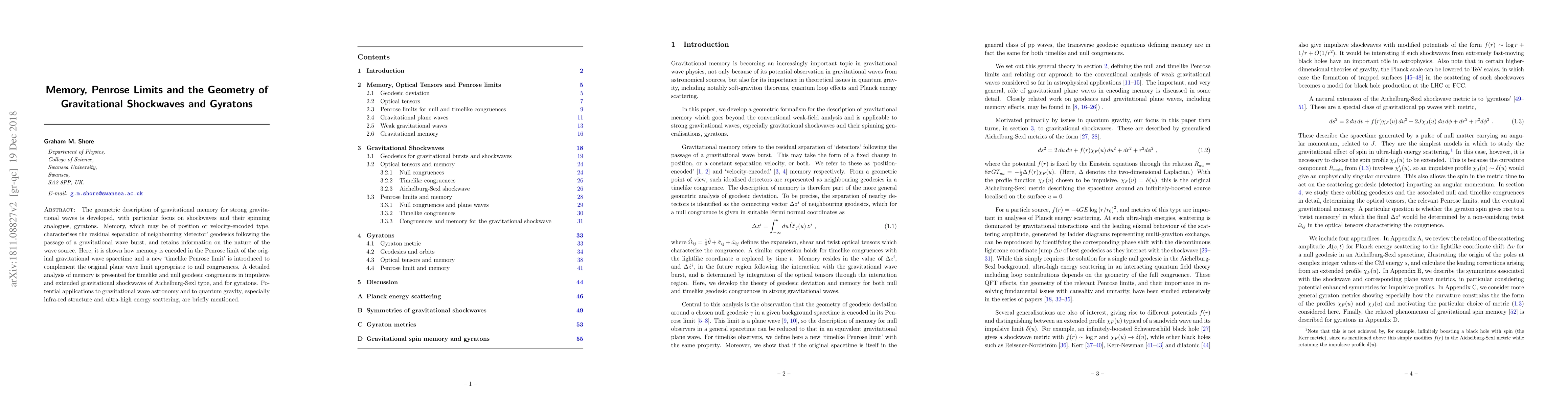 This paper develops a geometric framework for gravitational memory, focusing on shockwaves and gyratons, and introduces a new timelike Penrose limit. It explores how memory is encoded in gravitational wave spacetimes and discusses potential implications for gravitational wave astronomy and quantum gravity.