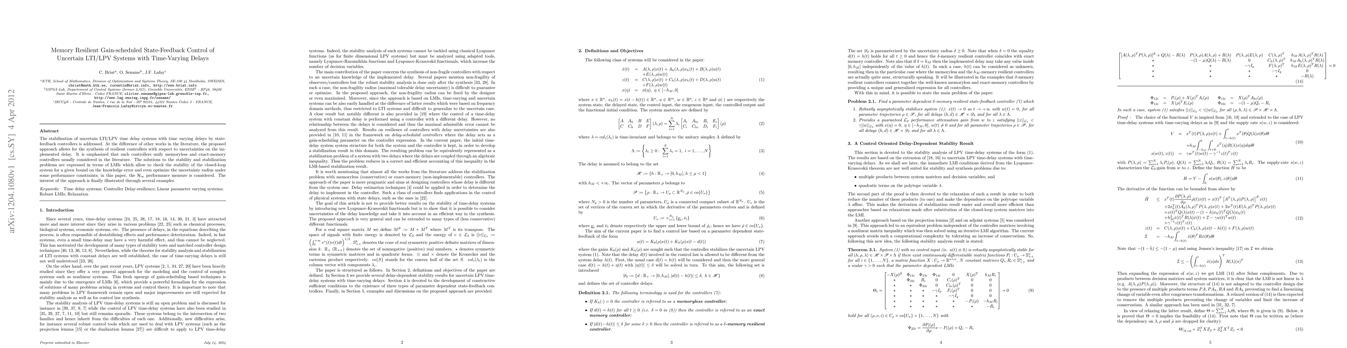 This paper proposes a gain-scheduled state-feedback control method for uncertain LTI/LPV systems with time-varying delays, synthesizing resilient controllers that unify memoryless and exact-memory approaches. Stability and stabilization are ensured via LMIs, optimizing the uncertainty radius under $\mathcal{H}_\infty$ performance constraints.