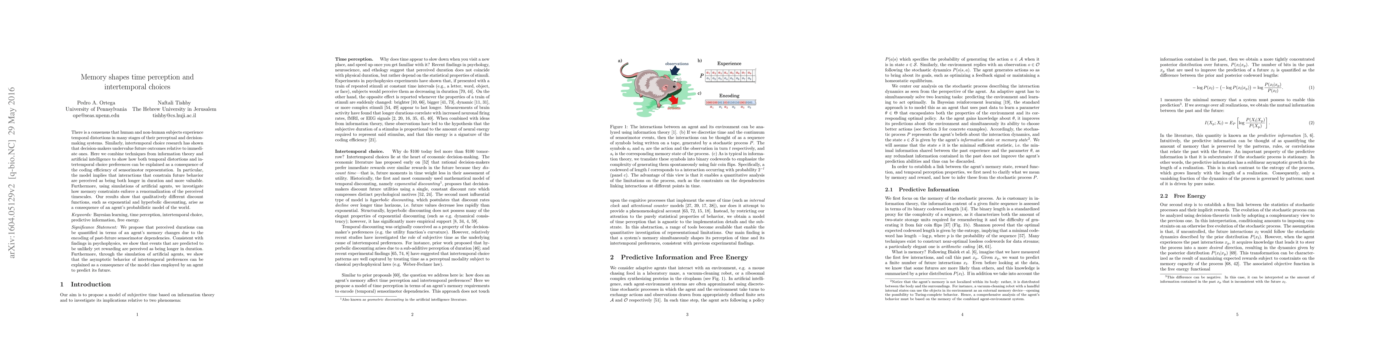 This paper combines information theory and AI to demonstrate that temporal distortions and intertemporal choice preferences result from the coding efficiency of sensorimotor representation. The study shows that memory constraints lead to a renormalization of perceived timescales, explaining different discount functions through an agent's probabilistic model of the world.