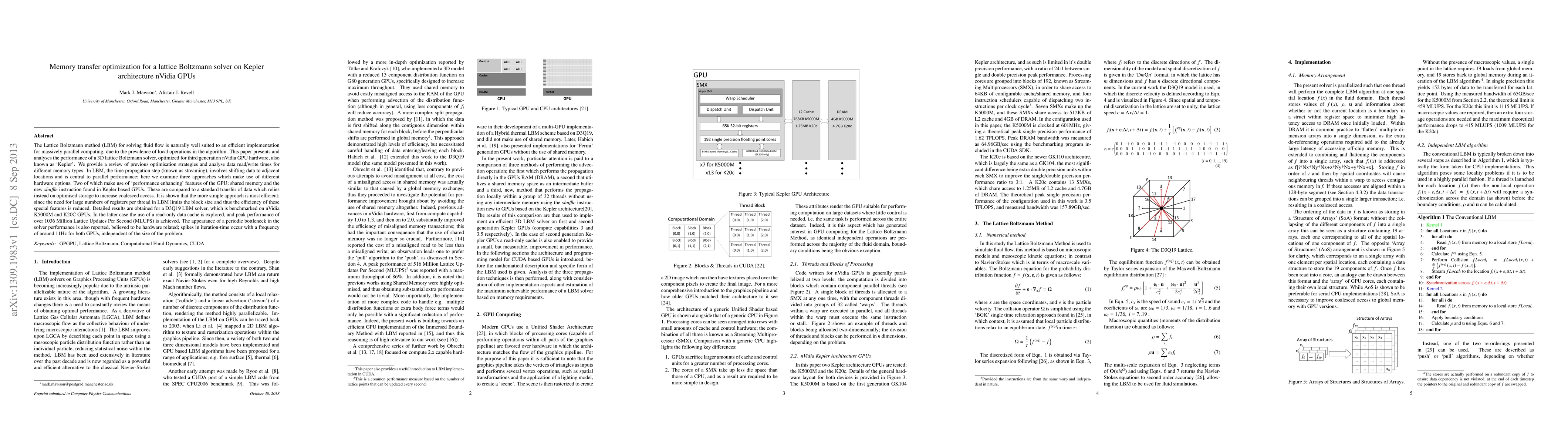 This paper optimizes a 3D lattice Boltzmann solver for nVidia Kepler GPUs, analyzing memory transfer strategies and achieving peak performance of over 1036 Million Lattice Updates Per Second (MLUPS) on K20C GPUs. Despite exploring advanced GPU features, the simplest data transfer method proved most efficient due to limitations in thread register usage.
