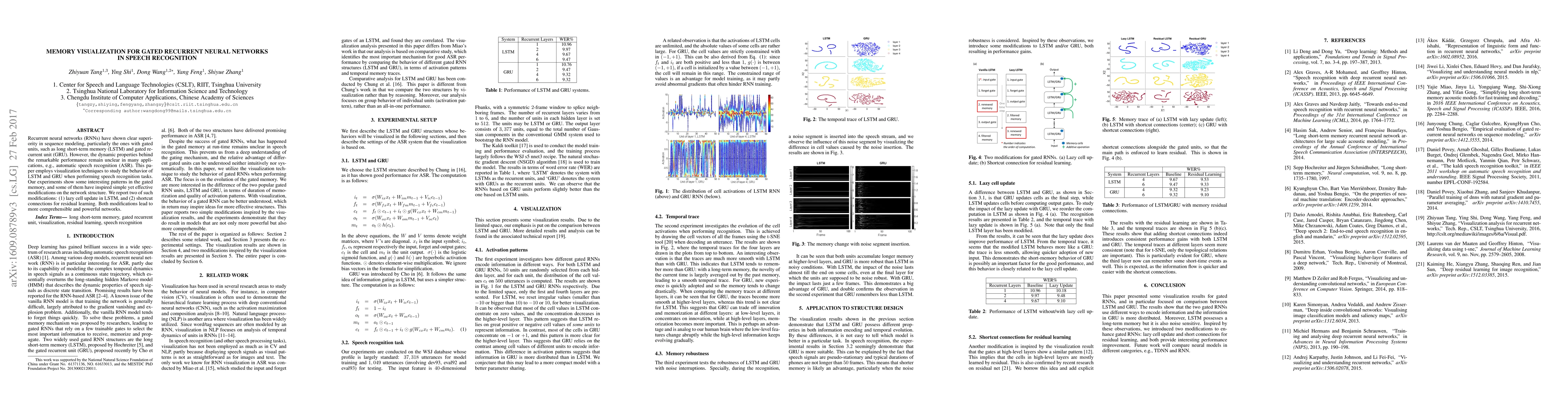 This paper investigates the dynamic behavior of LSTM and GRU networks in speech recognition using visualization techniques. It proposes two network modifications: lazy cell update in LSTM and shortcut connections for residual learning, both of which enhance network performance and comprehensibility.