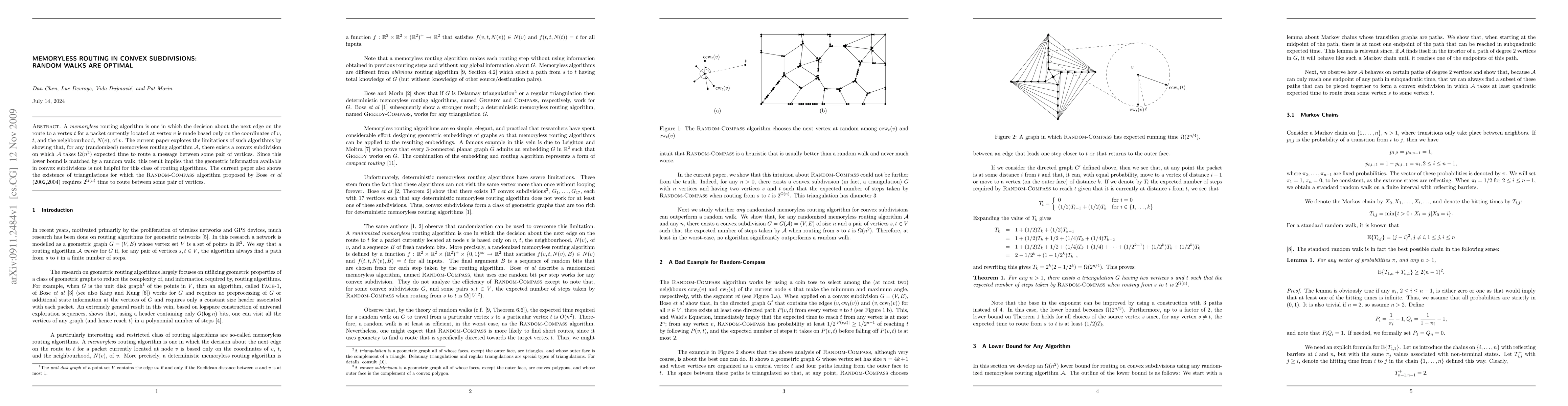 A new study shows that memoryless routing algorithms in convex subdivisions can take Omega(n^2) expected time to route a message between two vertices, even with random walks matching the lower bound.