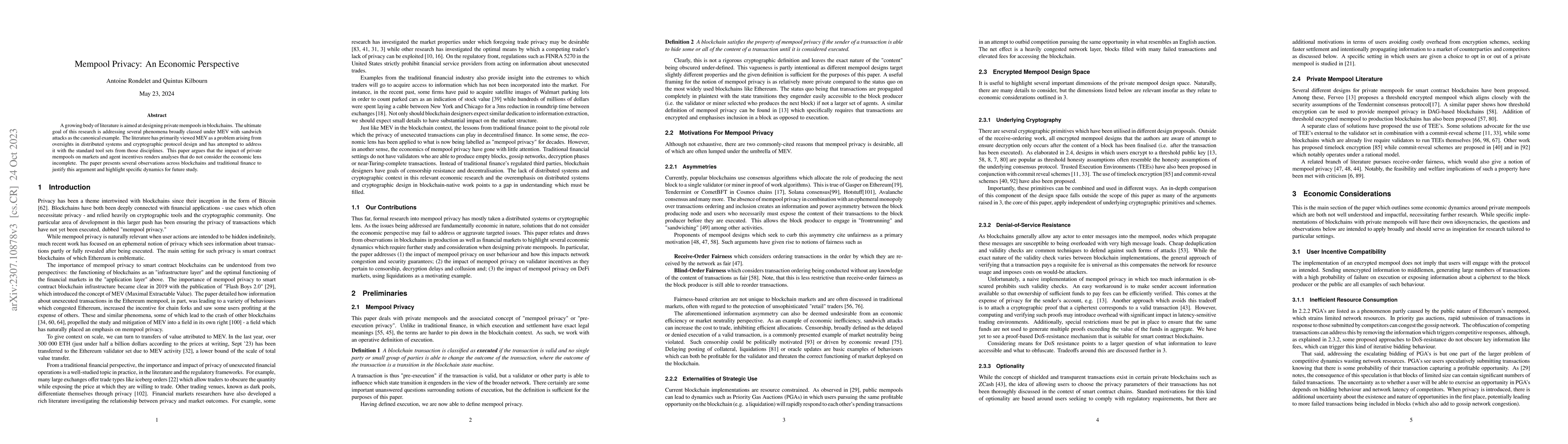 A growing body of literature is aimed at designing private mempools in blockchains. The ultimate goal of this research is addressing several phenomena broadly classed under MEV with sandwich attacks as the canonical example. The literature has primarily viewed MEV as a problem arising from oversights in distributed systems and cryptographic protocol design and has attempted to address it with the standard tool sets from those disciplines. This paper argues that the impact of private mempools on markets and agent incentives renders analyses that do not consider the economic lens incomplete. The paper presents several observations across blockchains and traditional finance to justify this argument and highlight specific dynamics for future study.