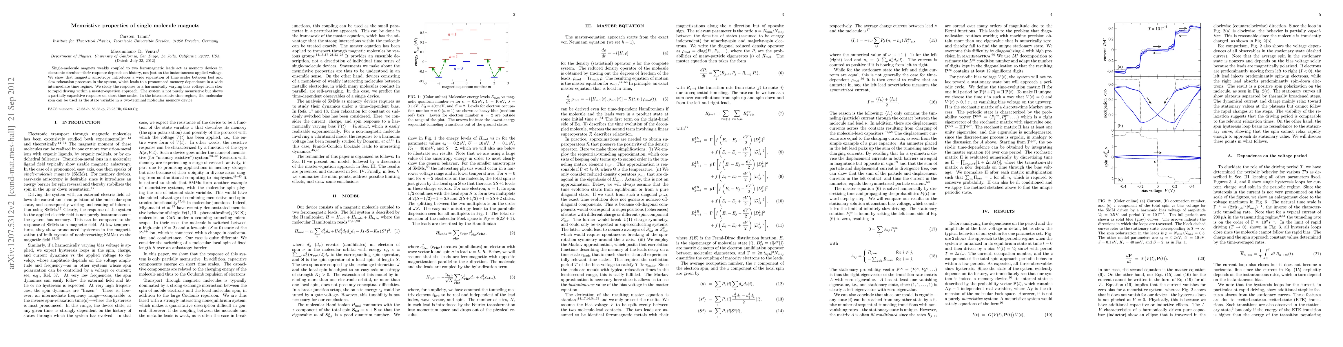 Single-molecule magnets exhibit memory-like behavior due to magnetic anisotropy, allowing for a wide range of timescales between fast and slow relaxation processes.