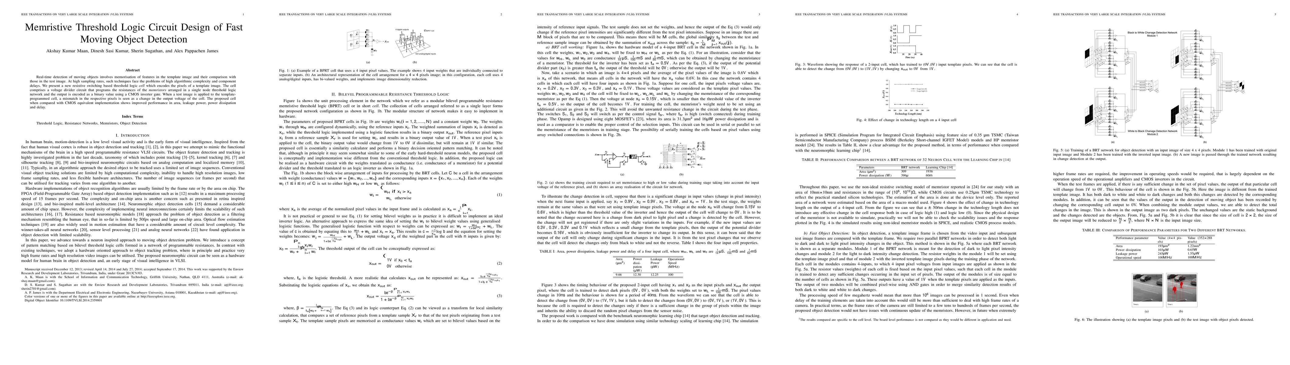 A new resistive switching based threshold logic cell is proposed for fast moving object detection, offering improved performance in area, leakage power, power dissipation and delay compared to CMOS equivalent implementation.