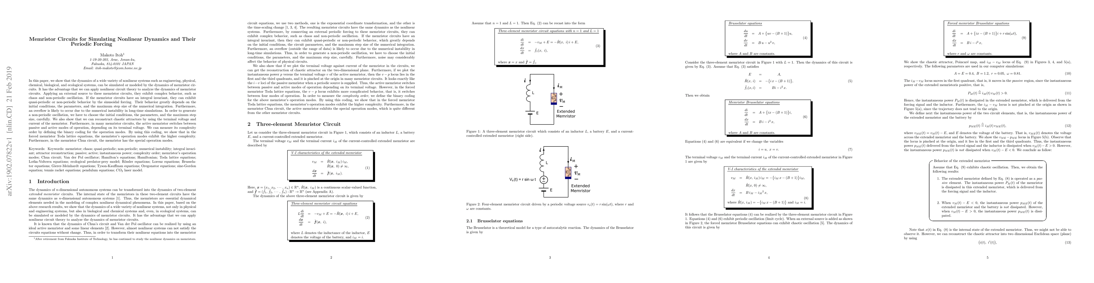 This paper demonstrates that memristor circuits can simulate the dynamics of various nonlinear systems, including chaos and non-periodic oscillations, through the application of nonlinear circuit theory. The complexity and behavior of these circuits depend on initial conditions, parameters, and numerical integration step size, with potential for overflow due to instability.