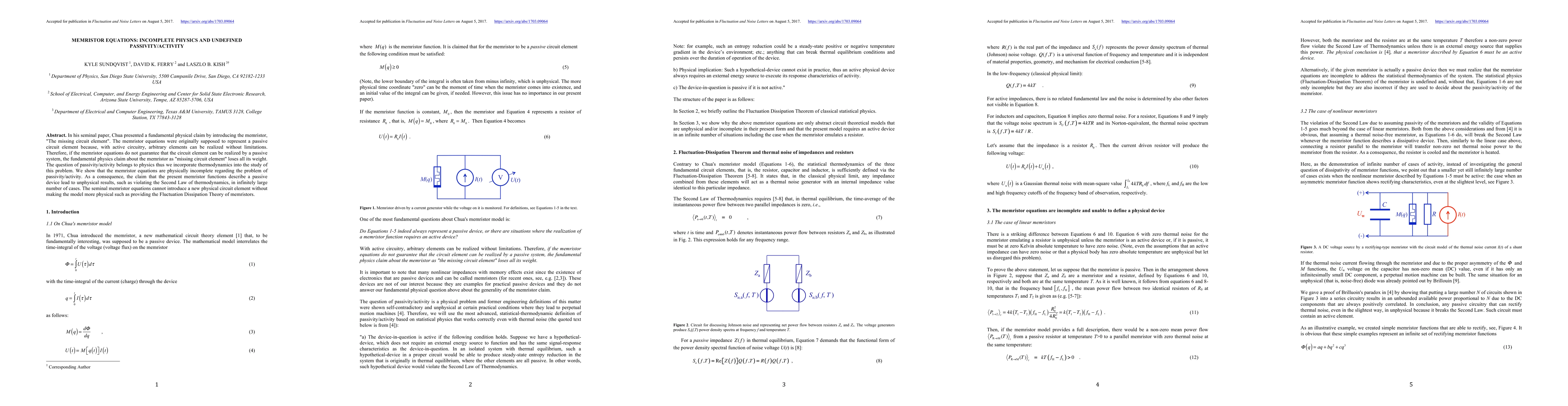 This paper critiques the fundamental physics of memristor equations, arguing they are incomplete and fail to ensure the memristor can be realized as a passive circuit element, leading to violations of the Second Law of thermodynamics. The authors suggest that the memristor model needs to incorporate thermodynamics and the Fluctuation Dissipation Theory to be physically valid.