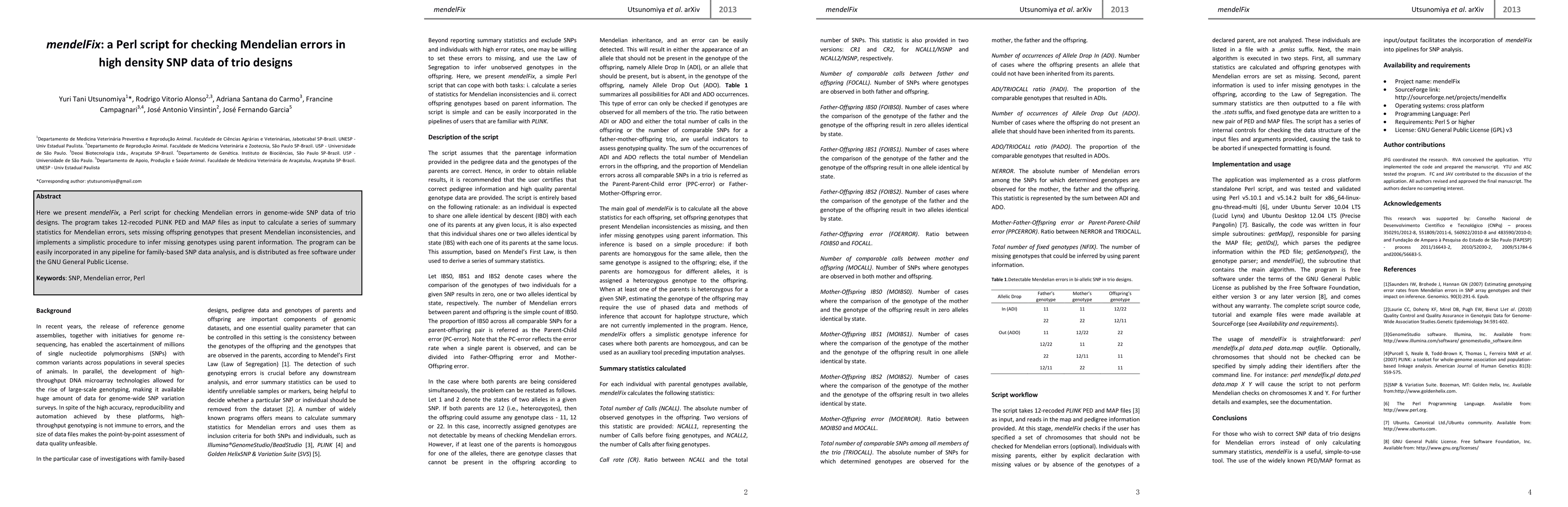 A Perl script called mendelFix checks for Mendelian errors in trio SNP data, identifying inconsistent genotypes and inferring missing offspring genotypes from parent information.