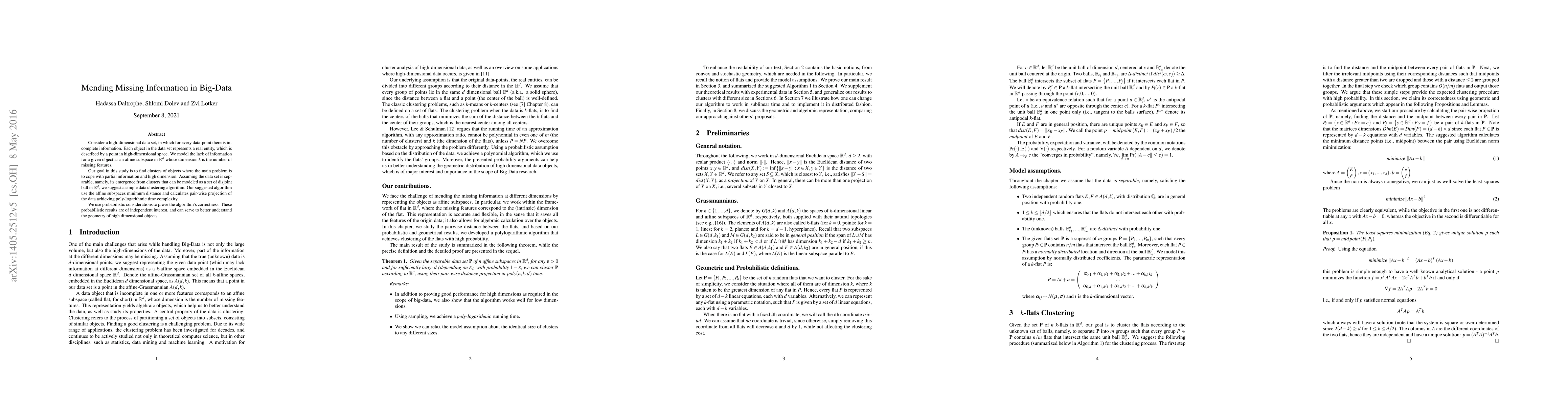 This research paper proposes an algorithm to cluster high-dimensional data with missing information, achieving poly-logarithmic time complexity and correcting the problem using probabilistic considerations.