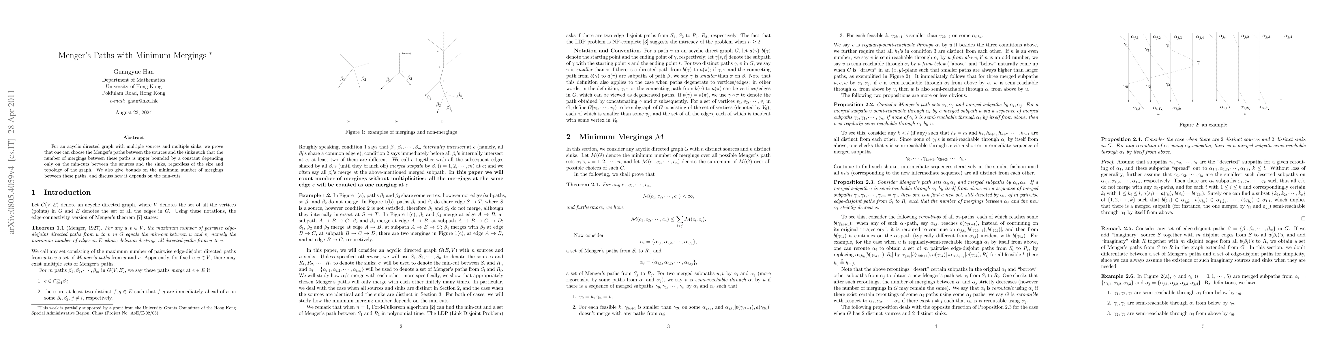 For an acyclic directed graph with multiple sources and multiple sinks, we prove that one can choose the Merger's paths between the sources and the sinks such that the number of mergings between these paths is upper bounded by a constant depending only on the min-cuts between the sources and the sinks, regardless of the size and topology of the graph. We also give bounds on the minimum number of mergings between these paths, and discuss how it depends on the min-cuts.