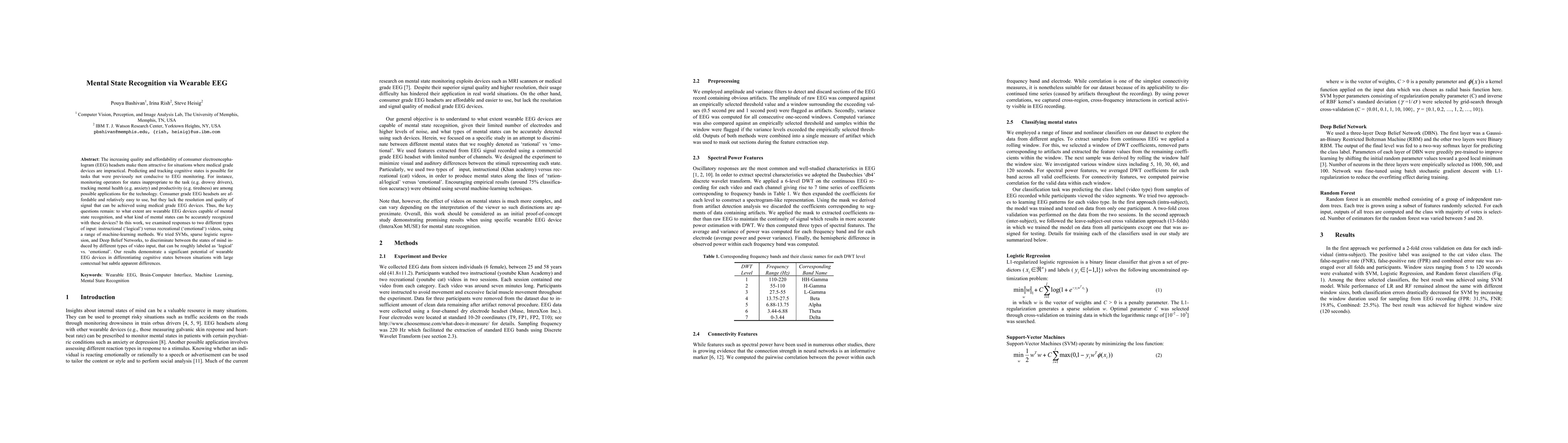 This paper investigates the potential of consumer-grade wearable EEG headsets for recognizing mental states through machine learning, comparing responses to instructional and recreational videos. Results show significant promise in differentiating cognitive states induced by different types of video input, despite the limitations of the devices compared to medical-grade EEG.