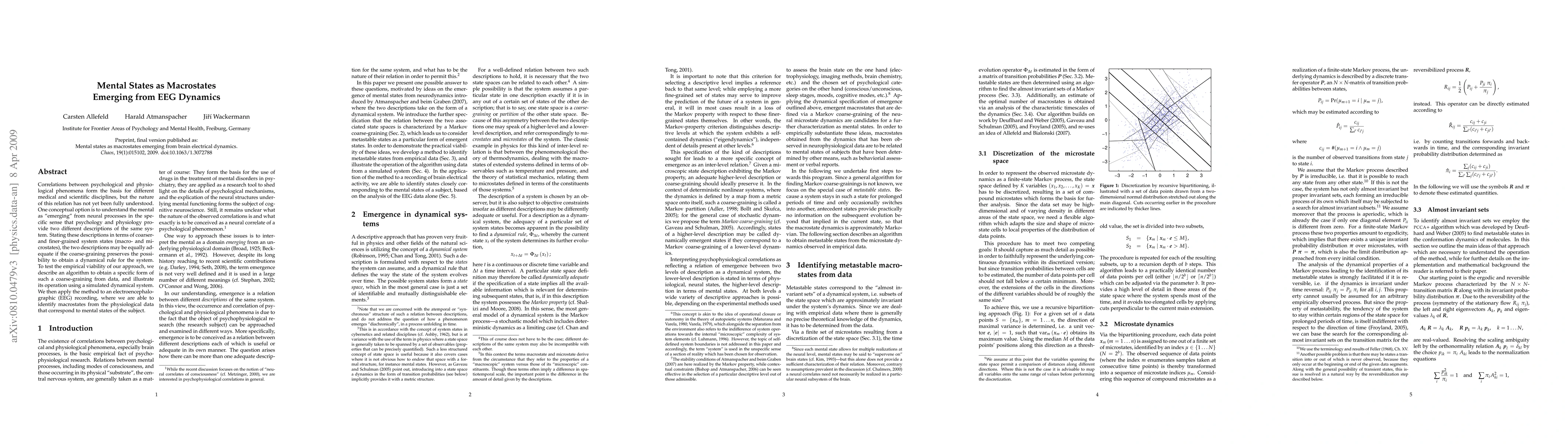 This paper explores the correlation between psychological and physiological phenomena by proposing that mental states emerge from neural processes. The authors develop an algorithm to identify macrostates from EEG data that correspond to mental states, demonstrating a method to correlate physiological data with psychological descriptions.