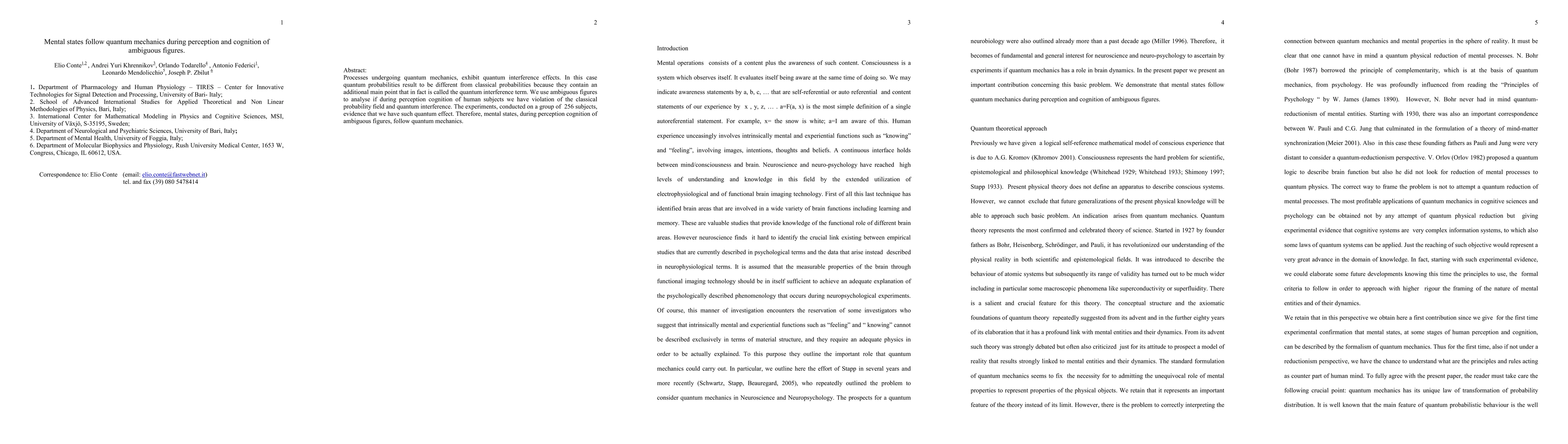 This study investigates whether mental states during perception and cognition of ambiguous figures exhibit quantum mechanical effects, specifically quantum interference. Experiments with 256 subjects reveal a violation of classical probability fields, suggesting that quantum mechanics may underpin mental processes in perception and cognition.
