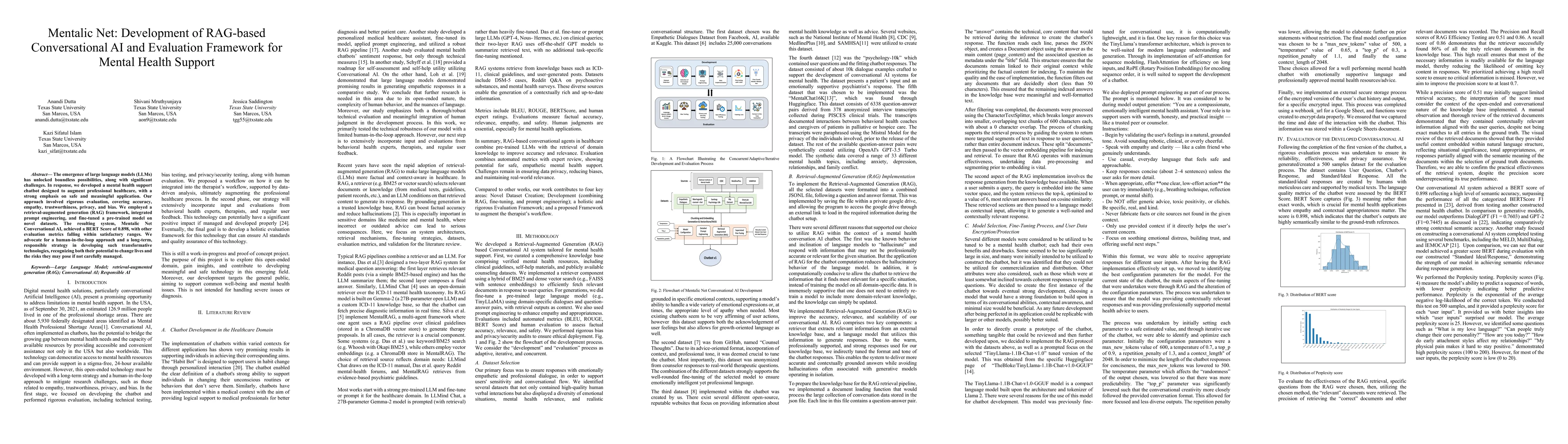 The emergence of large language models (LLMs) has unlocked boundless possibilities, along with significant challenges. In response, we developed a mental health support chatbot designed to augment professional healthcare, with a strong emphasis on safe and meaningful application. Our approach involved rigorous evaluation, covering accuracy, empathy, trustworthiness, privacy, and bias. We employed a retrieval-augmented generation (RAG) framework, integrated prompt engineering, and fine-tuned a pre-trained model on novel datasets. The resulting system, Mentalic Net Conversational AI, achieved a BERT Score of 0.898, with other evaluation metrics falling within satisfactory ranges. We advocate for a human-in-the-loop approach and a long-term, responsible strategy in developing such transformative technologies, recognizing both their potential to change lives and the risks they may pose if not carefully managed.