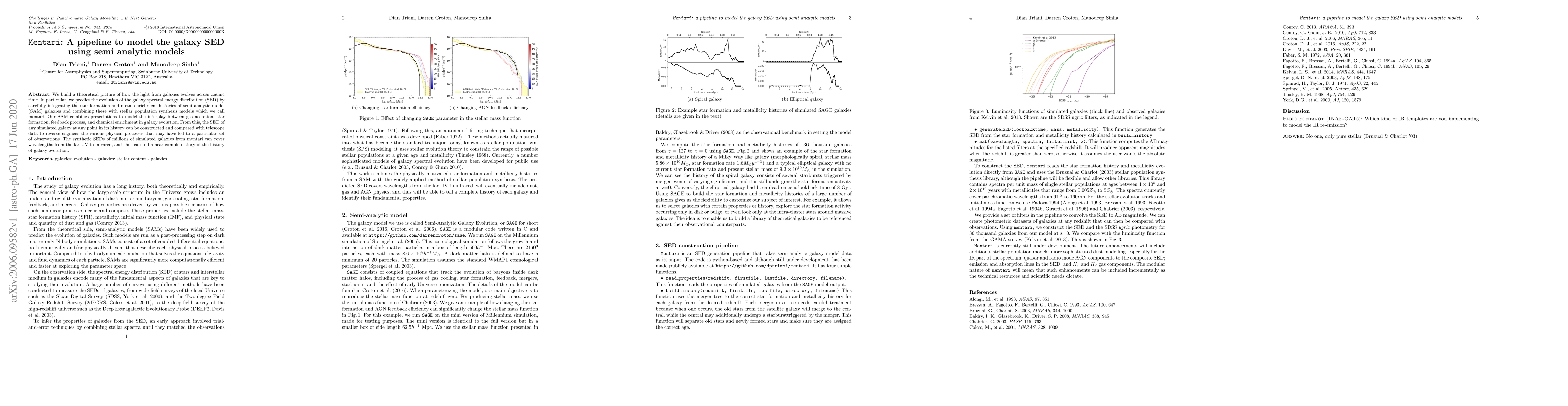 Researchers developed a new method called Mentari to model galaxy evolution and spectral energy distribution (SED) using semi-analytic models. This tool can simulate the light from galaxies across cosmic time, providing insights into their history and helping scientists understand physical processes that led to specific observations.