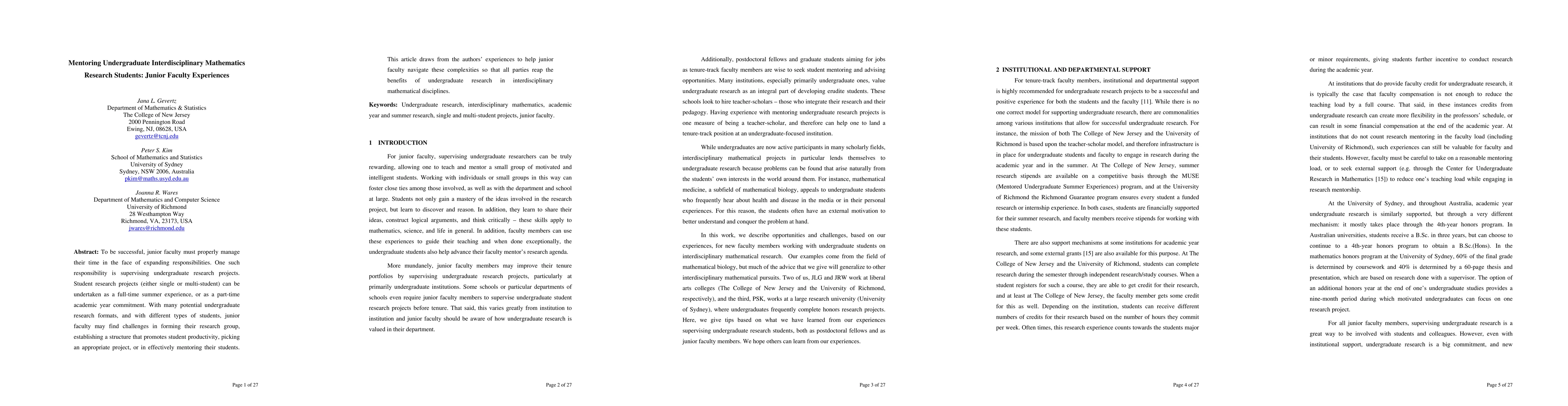 This paper explores the challenges junior faculty face in mentoring undergraduate research students in interdisciplinary mathematics, offering insights from the authors' experiences to help manage time and responsibilities effectively while fostering student productivity and engagement.