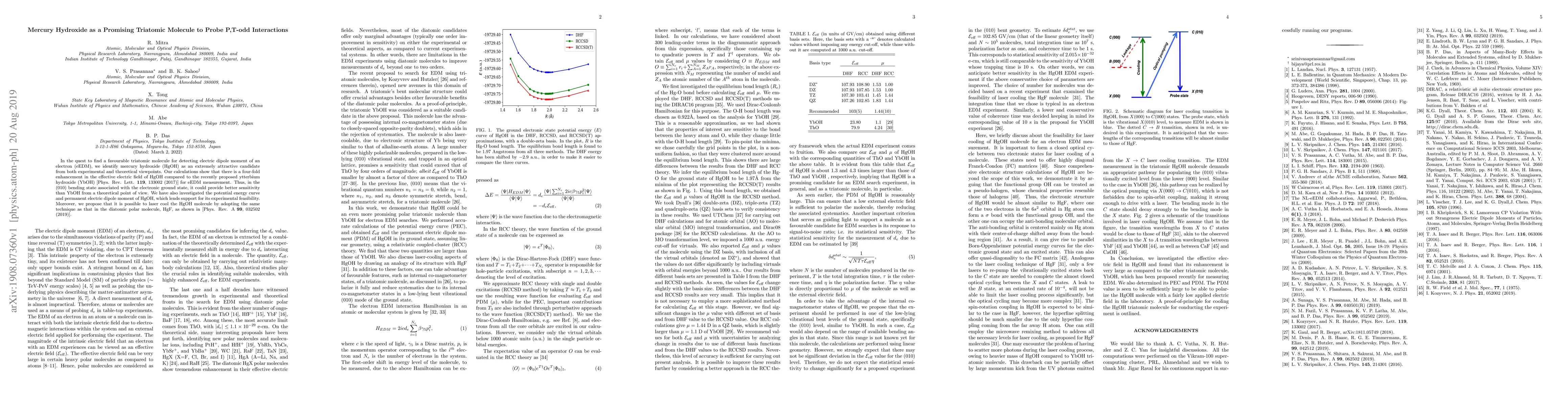 In the quest to find a favourable triatomic molecule for detecting electric dipole moment of an electron (eEDM), we identify mercury hydroxide (HgOH) as an extremely attractive candidate from both experimental and theoretical viewpoints. Our calculations show that there is a four-fold enhancement in the effective electric field of HgOH compared to the recently proposed ytterbium hydroxide (YbOH) [Phys. Rev. Lett. 119, 133002 (2017)] for eEDM measurement. Thus, in the (010) bending state associated with the electronic ground state, it could provide better sensitivity than YbOH from a theoretical point of view. We have also investigated the potential energy curve and permanent electric dipole moment of HgOH, which lends support for its experimental feasibility. Moreover, we propose that it is possible to laser cool the HgOH molecule by adopting the same technique as that in the diatomic polar molecule, HgF, as shown in [Phys. Rev. A 99, 032502 (2019)].