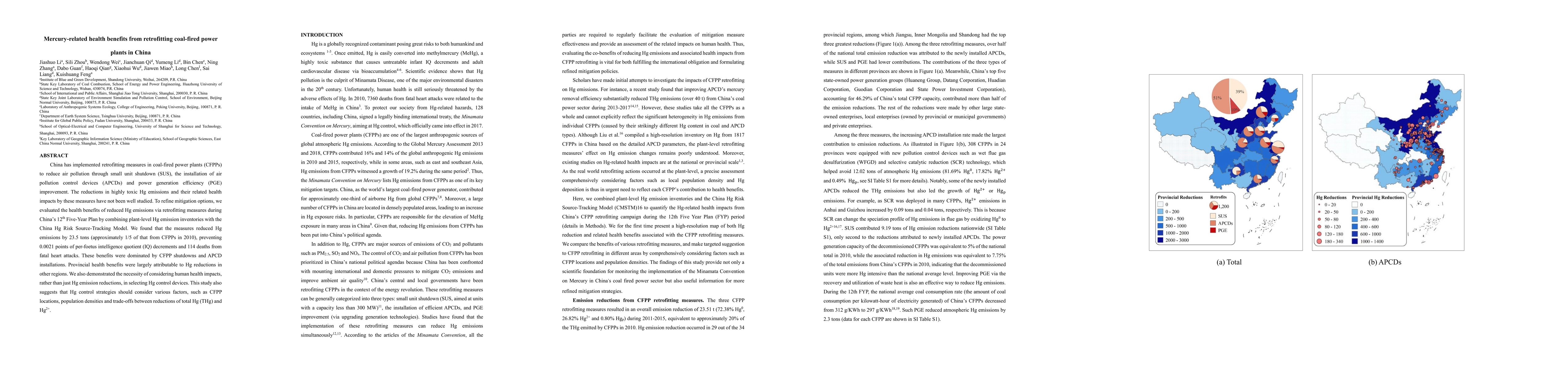 This study evaluates the health benefits of retrofitting coal-fired power plants in China, showing that measures reduced Hg emissions by 23.5 tons, preventing IQ decrements and deaths, emphasizing the importance of human health impacts in Hg control strategies. The study highlights the need for comprehensive Hg control considering factors like plant locations and population densities.