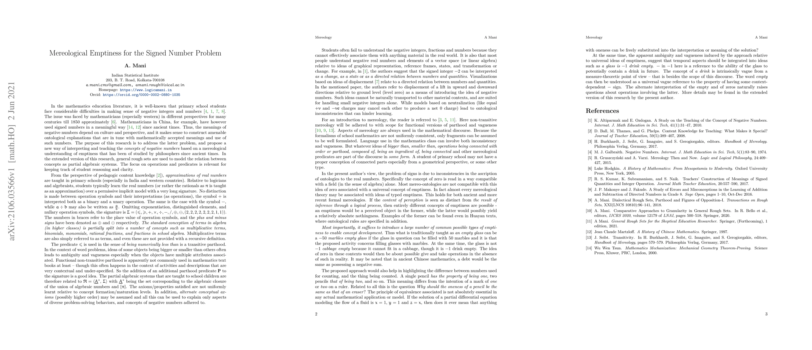 It is well-known (at least in the education research literature) that primary school students face considerable difficulties in the understanding of negative integers (and numbers), related operations and their visualizations. In the present research, a proposal based on mereological principles is advanced towards solving aspects of the problem by the present author. Her proposal builds on the actual semantic content of what is taught expressed in algebraic terms, and natural types that can potentially be an explicit habit.
