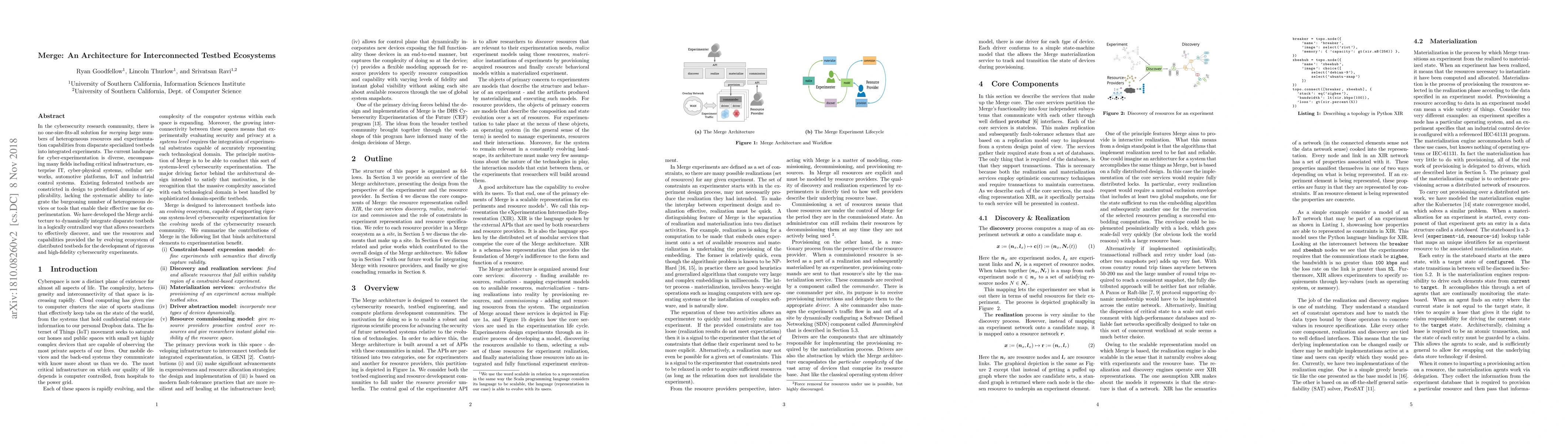 In the cybersecurity research community, there is no one-size-fits-all solution for merging large numbers of heterogeneous resources and experimentation capabilities from disparate specialized testbeds into integrated experiments. The current landscape for cyber-experimentation is diverse, encompassing many fields including critical infrastructure, enterprise IT, cyber-physical systems, cellular networks, automotive platforms, IoT and industrial control systems. Existing federated testbeds are constricted in design to predefined domains of applicability, lacking the systematic ability to integrate the burgeoning number of heterogeneous devices or tools that enable their effective use for experimentation. We have developed the Merge architecture to dynamically integrate disparate testbeds in a logically centralized way that allows researchers to effectively discover, and use the resources and capabilities provided the by evolving ecosystem of distributed testbeds for the development of rigorous and high-fidelity cybersecurity experiments.