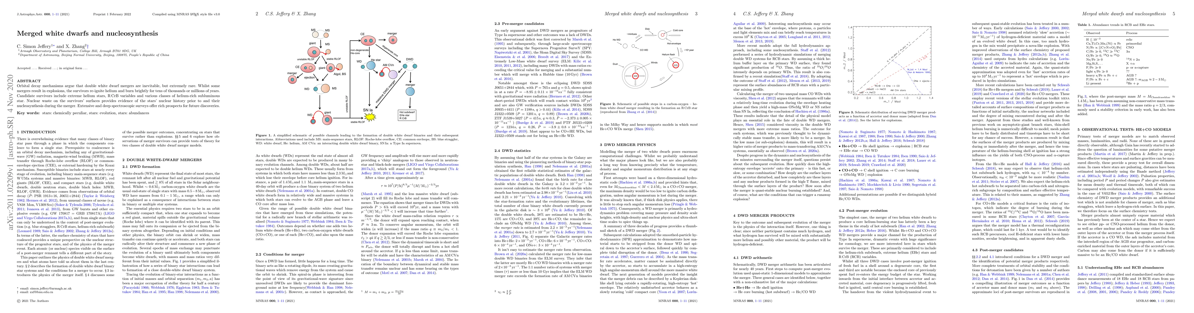 Orbital decay mechanisms argue that double white dwarf mergers are inevitable, but extremely rare. Whilst some mergers result in explosions, the survivors re-ignite helium and burn brightly for tens of thousands or millions of years. Candidate survivors include extreme helium stars, R CrB variables and various classes of helium-rich subluminous star. Nuclear waste on the survivors' surfaces provides evidence of the stars' nuclear history prior to and their nucleosynthesis during the merger. Extensive and deep spectroscopic surveys offer rich prospects for future discoveries.