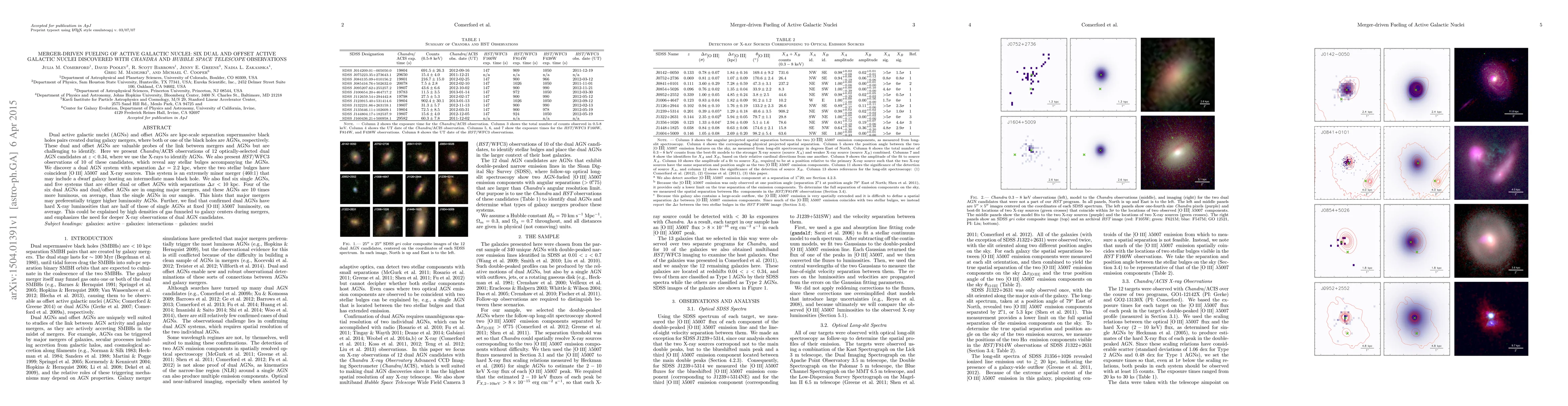 This study identifies six dual and offset active galactic nuclei (AGNs) using Chandra and Hubble Space Telescope observations, revealing that major mergers trigger AGNs that are 10 times more luminous than single AGNs. The findings suggest that mergers preferentially fuel higher luminosity AGNs and that dual AGNs have lower hard X-ray luminosities, likely due to dense gas funneling during mergers.