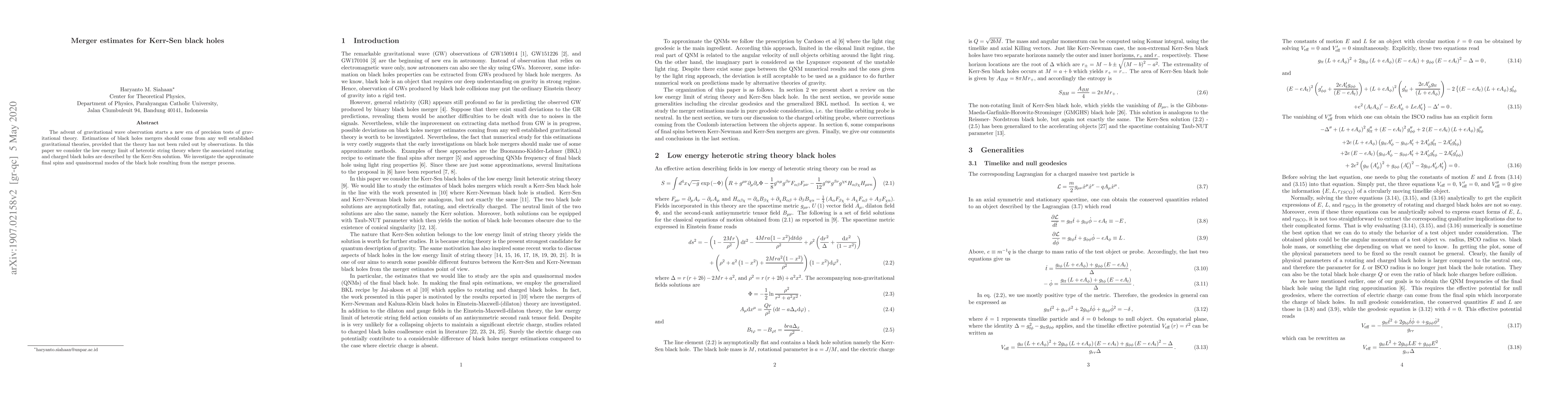 This paper examines the merger estimates of Kerr-Sen black holes in the low energy limit of heterotic string theory, focusing on the final spins and quasinormal modes resulting from the black hole merger process to test gravitational theories.