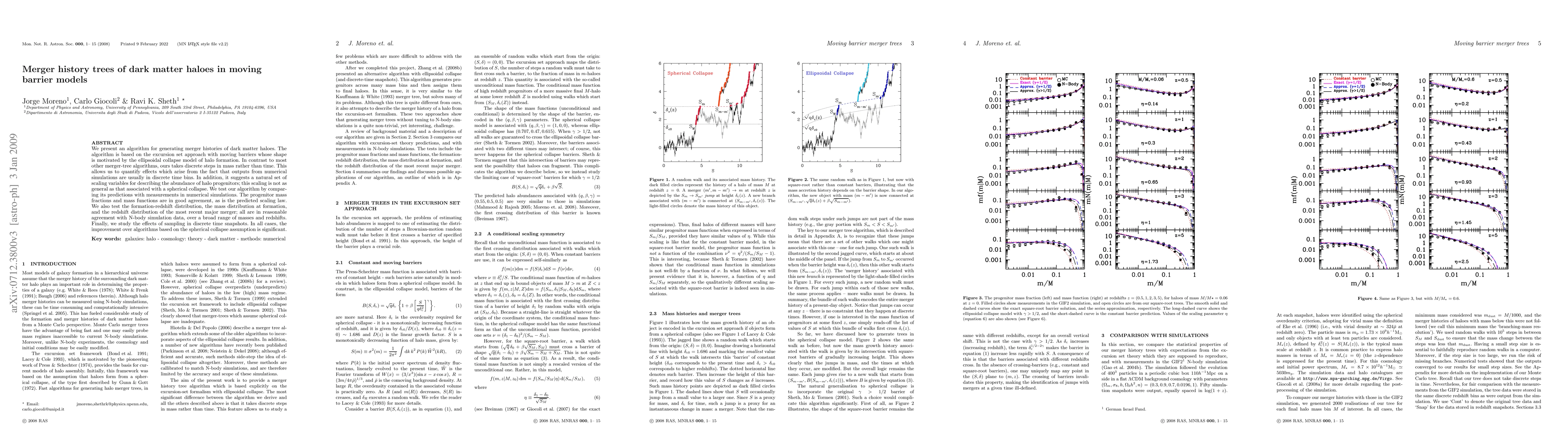 A new algorithm generates merger histories of dark matter haloes using a moving barrier model, achieving good agreement with numerical simulations in predicting progenitor mass fractions, mass functions, and formation-redshift distributions.