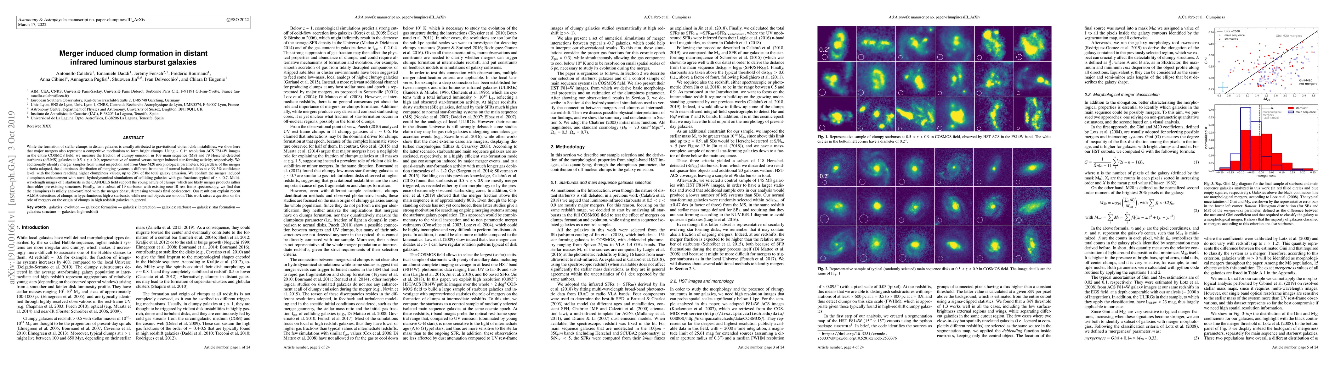 While the formation of stellar clumps in distant galaxies is usually attributed to gravitational violent disk instabilities, we show here that major mergers also represent a competitive mechanism to form bright clumps. Using ~0.1'' resolution ACS F814W images in the entire COSMOS field, we measure the fraction of clumpy emission in 109 main sequence (MS) and 79 Herschel-detected starbursts (off-MS) galaxies at 0.5 < z < 0.9, representative of normal versus merger induced star-forming activity, respectively. We additionally identify merger samples from visual inspection and from Gini-M20 morphological parameters. Regardless of the merger criteria adopted, the clumpiness distribution of merging systems is different from that of normal isolated disks at > 99.5 % confidence level, with the former reaching higher clumpiness values, up to 20 % of the total galaxy emission. We confirm the merger induced clumpiness enhancement with novel hydrodynamical simulations of colliding galaxies with gas fractions typical of z ~ 0.7. Multi-wavelength images of three starbursts in the CANDELS field support the young nature of clumps, which are likely merger products rather than older pre-existing structures. Finally, for a subset of 19 starbursts with existing near-IR rest frame spectroscopy, we find that the clumpiness is mildly anti-correlated with the merger phase, decreasing towards final coalescence. Our result can explain recent ALMA detections of clumps in hyperluminous high-z starbursts, while normal objects are smooth. This work raises a question on the role of mergers on the origin of clumps in high redshift galaxies in general.